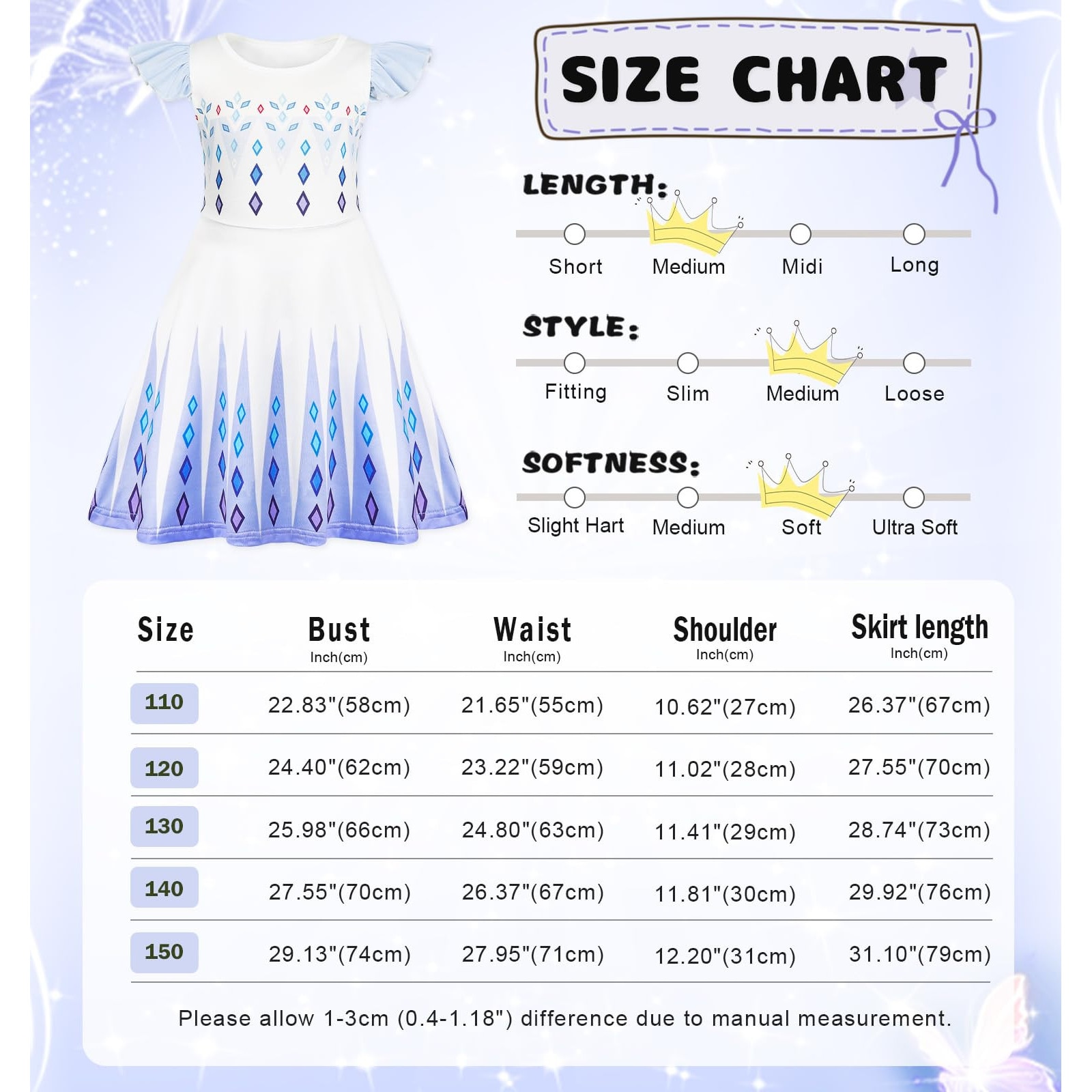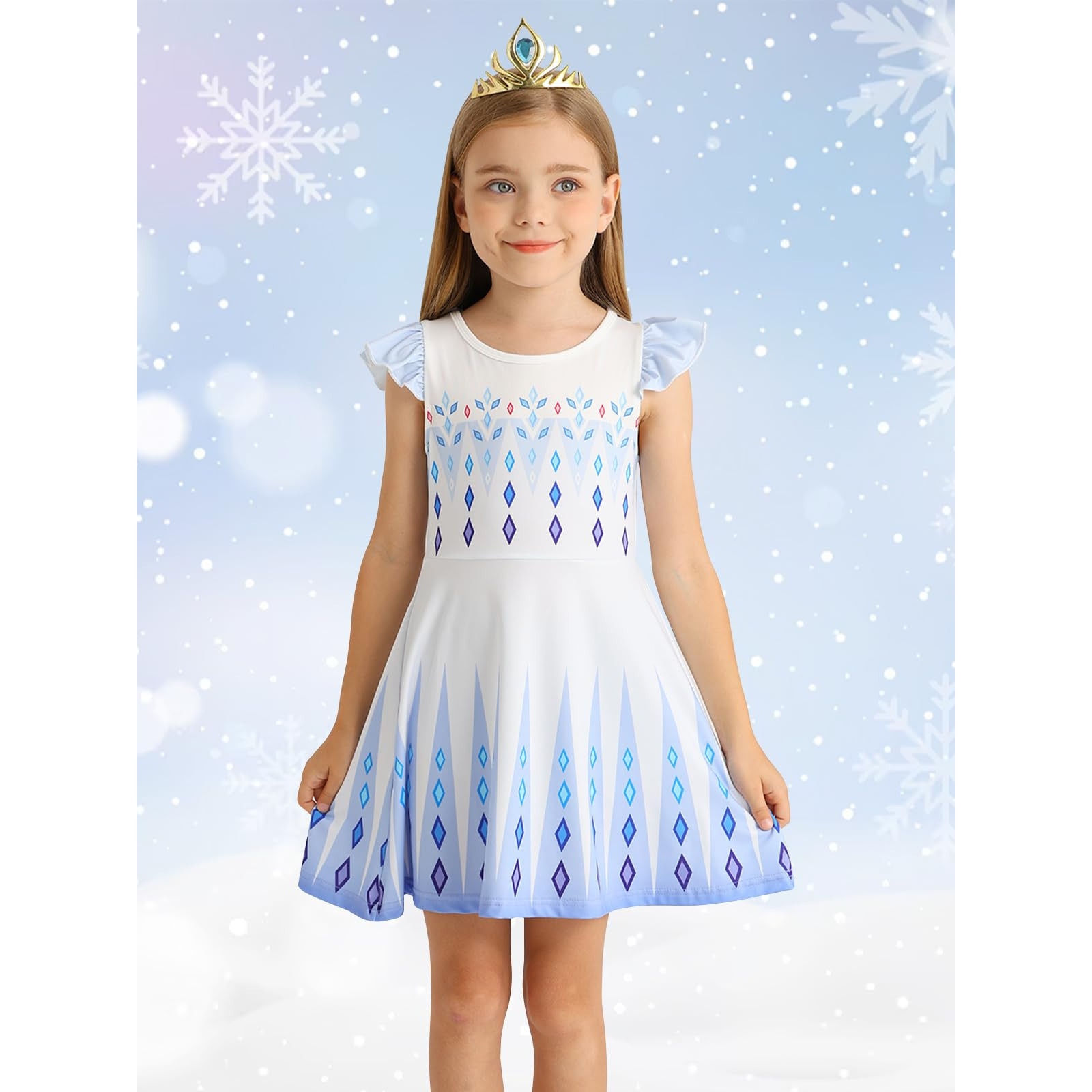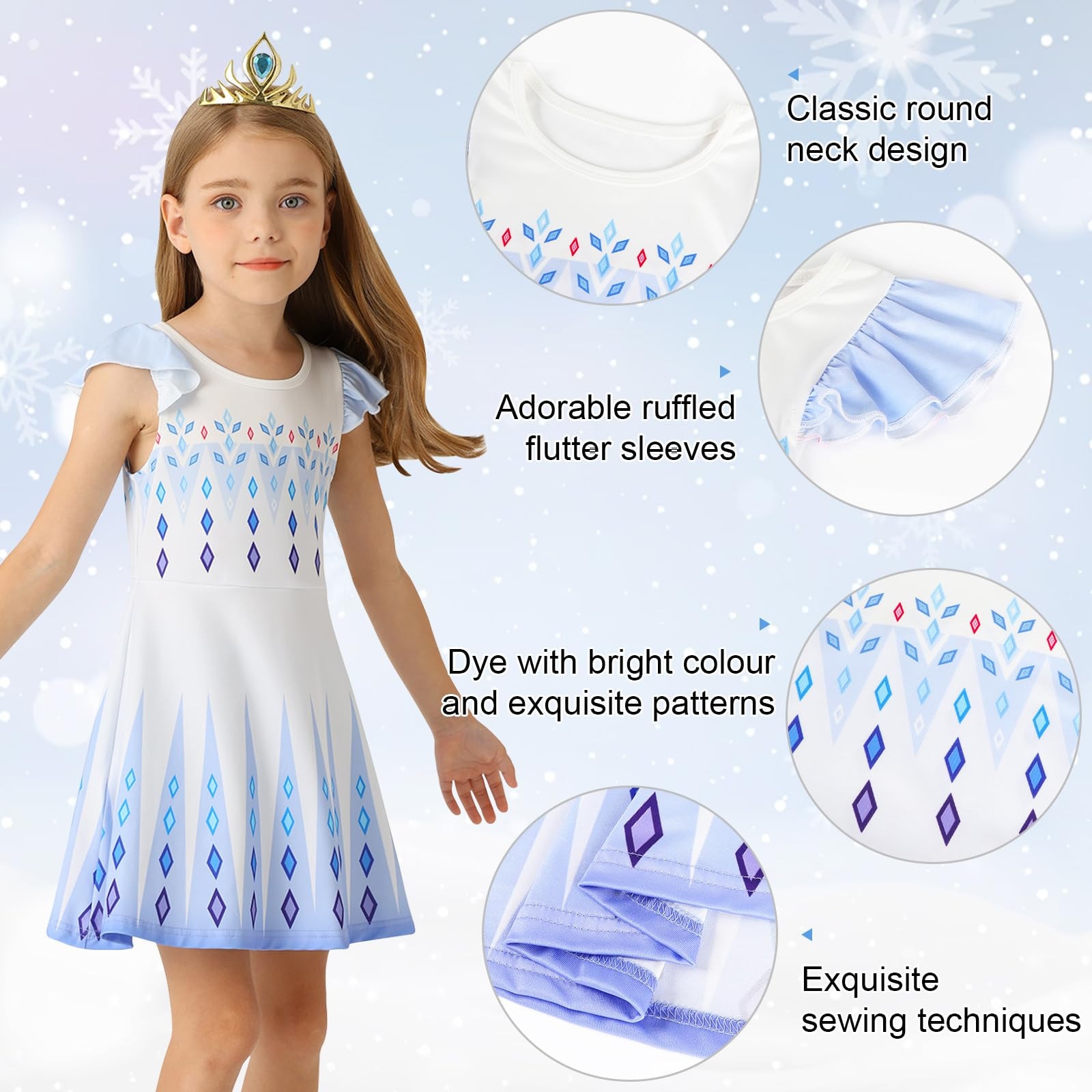 Costum Elsa - Frozen Copii Set, Party Chili®, Halloween, Cosplay, Craciun, Carnaval, Paste, Ziua Copilului, Ziua Indragostitilor, Albastru, 5-6 Ani, 120 cm