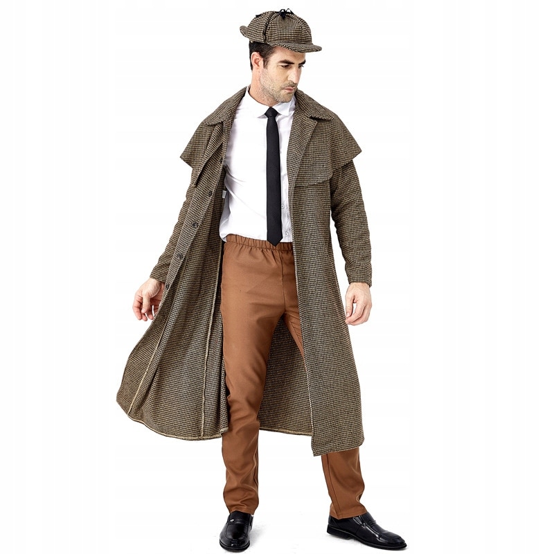 Costum, Korbi, Sherlock Holmes, Aspect Autentic, Set Complet, Design Elegant, Haina Lungime 1, 5 M, Latime Subrat 64 cm, Lungime Totala 121 cm, Lungimea Manecii 61 cm, Maro
