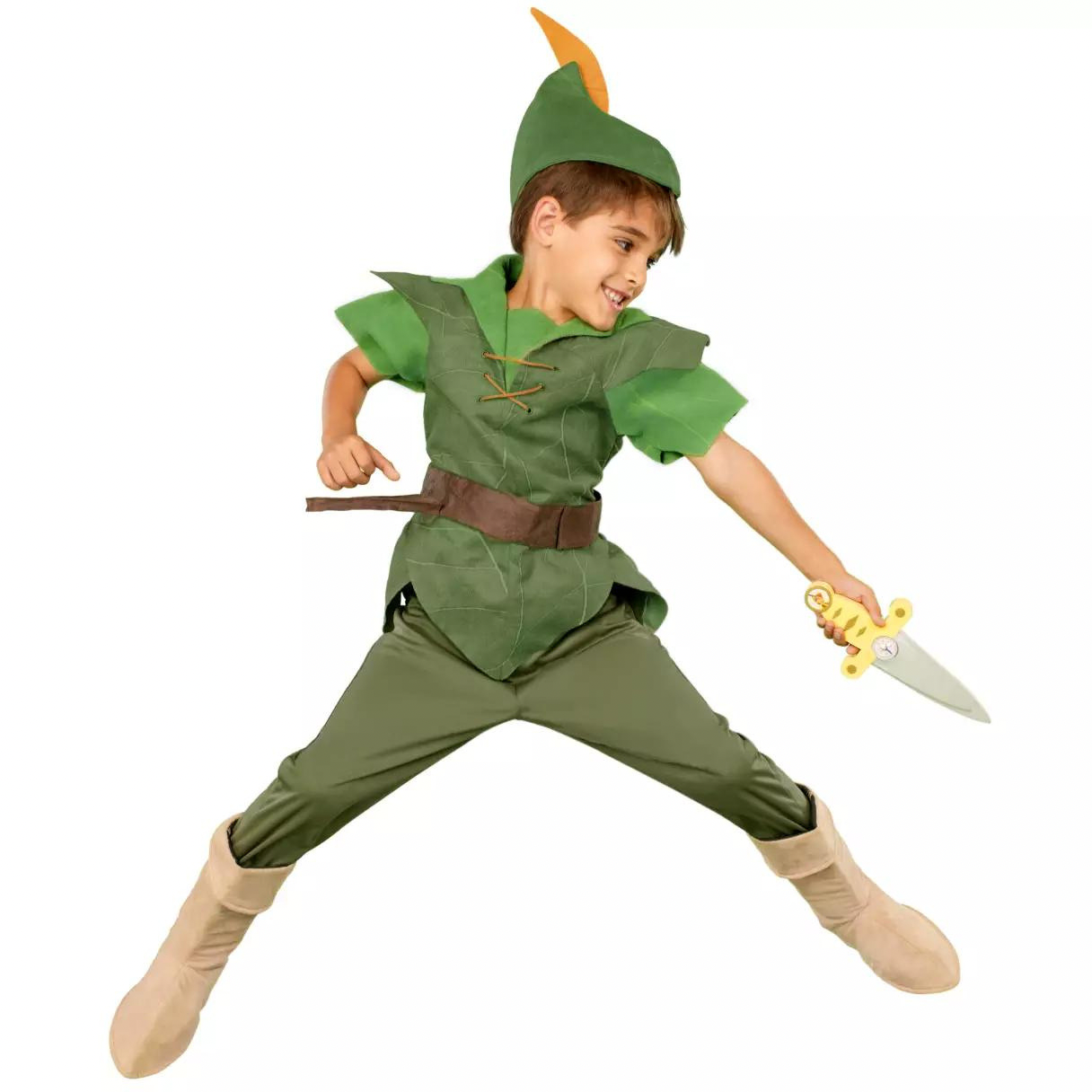 Costum Peter Pan pentru Copii, Set cu Palarie si Cizme din Spuma, EvrikaUnity®, 4-5 ani, 120 cm, Verde/ Portocaliu