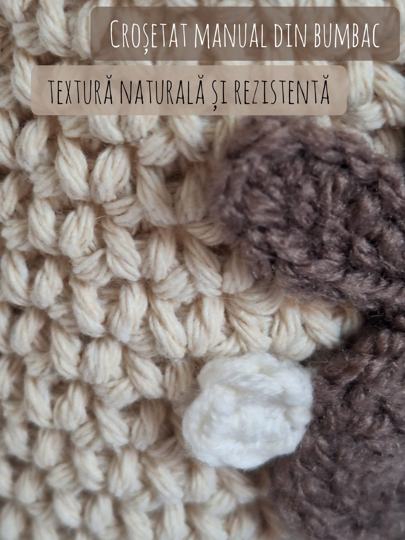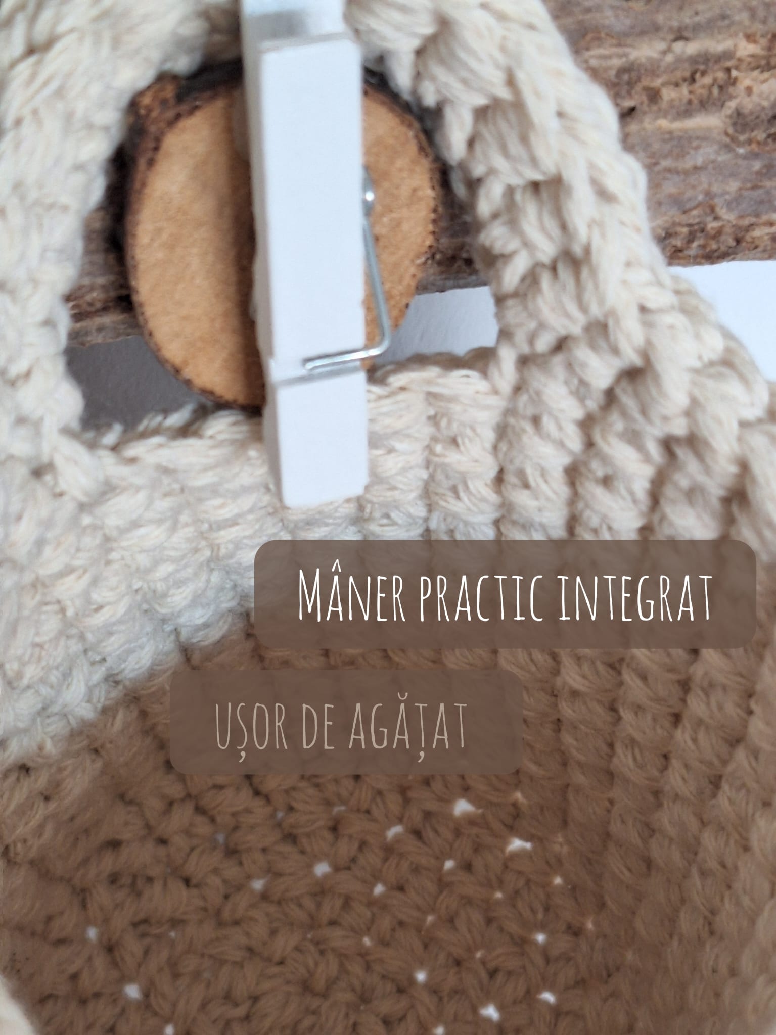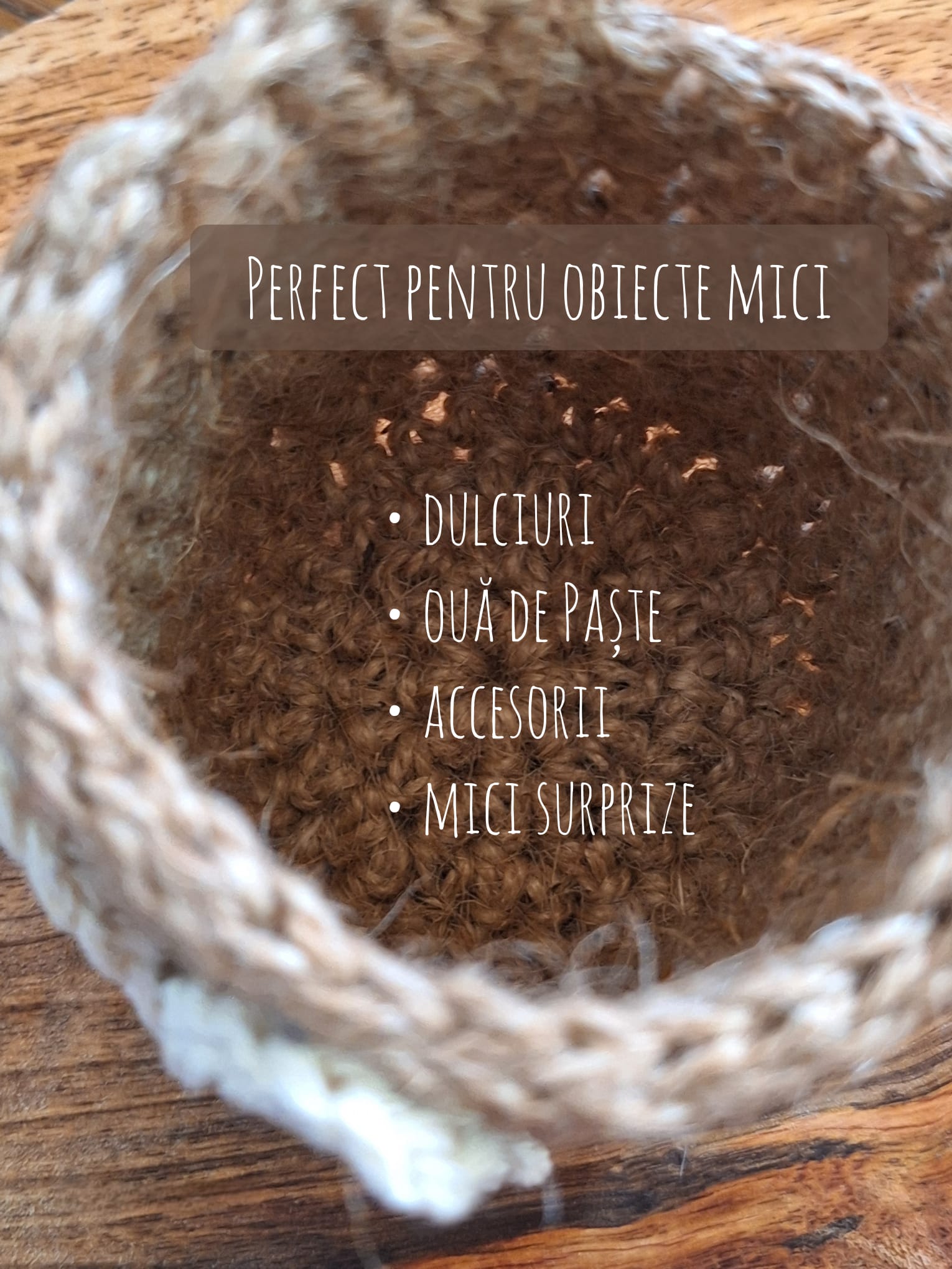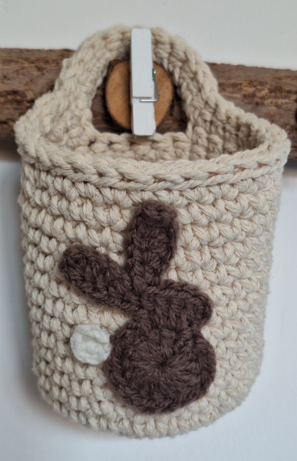 Cosulet Crosetat BABOLEXA® Fabricat de Mana, 9×10 cm, Decor cu Iepuras, Cos pentru Cadouri Mici, Dulciuri si Biletele, Ornament Rustic Decorativ, Handmade si Rezistent, din Material Natural din Bumbac, Bej/Maro