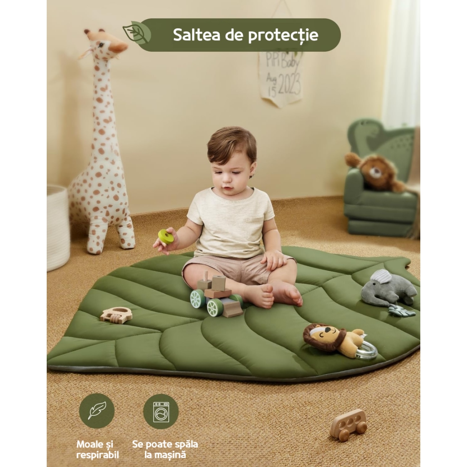 Cadou perfect pentru nou-nascuti - Aceasta saltea cu design in forma de frunza si tema de animale safari este inspirata de natura, un decor confortabil si calduros pentru casa dumneavoastra. Nu este doar o investitie in dezvoltarea copilului dumneavoastra, ci si un cadou perfect si cel mai iubit pentru nou-nascuti la petreceri de botez, zile de nastere, Craciun si ocazii speciale.
