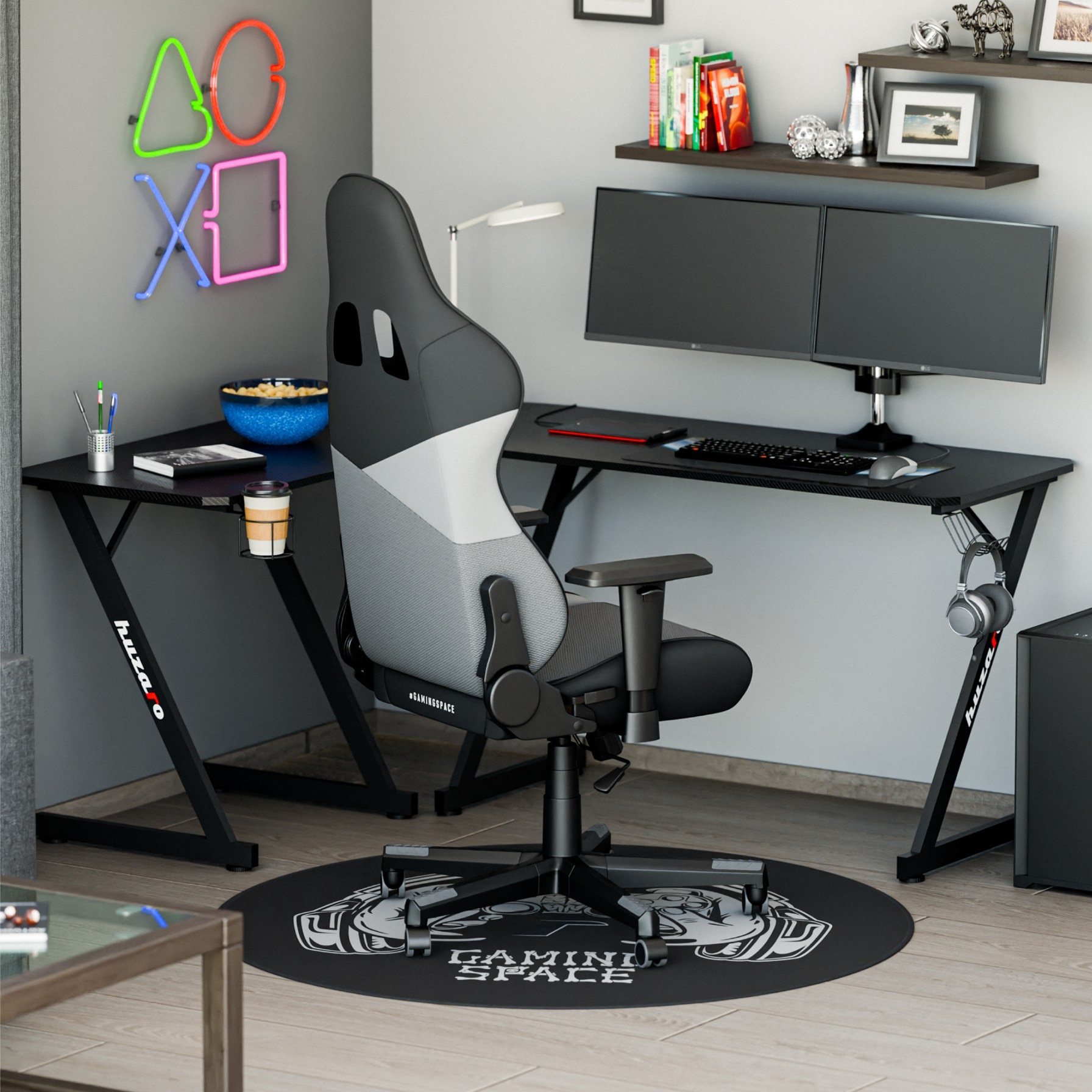 Covor pentru scaun de birou Huzaro FloorMat 6.0, 120 x 120 cm, Neopren, Alb/Negru