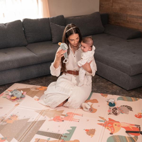 Covoras de joaca termic pentru copii, Lorelli, din spuma XPE, design cu doua fete, pliabil, impermeabil, potrivit si pentru exterior, 120 x 180 cm, Home & Stars