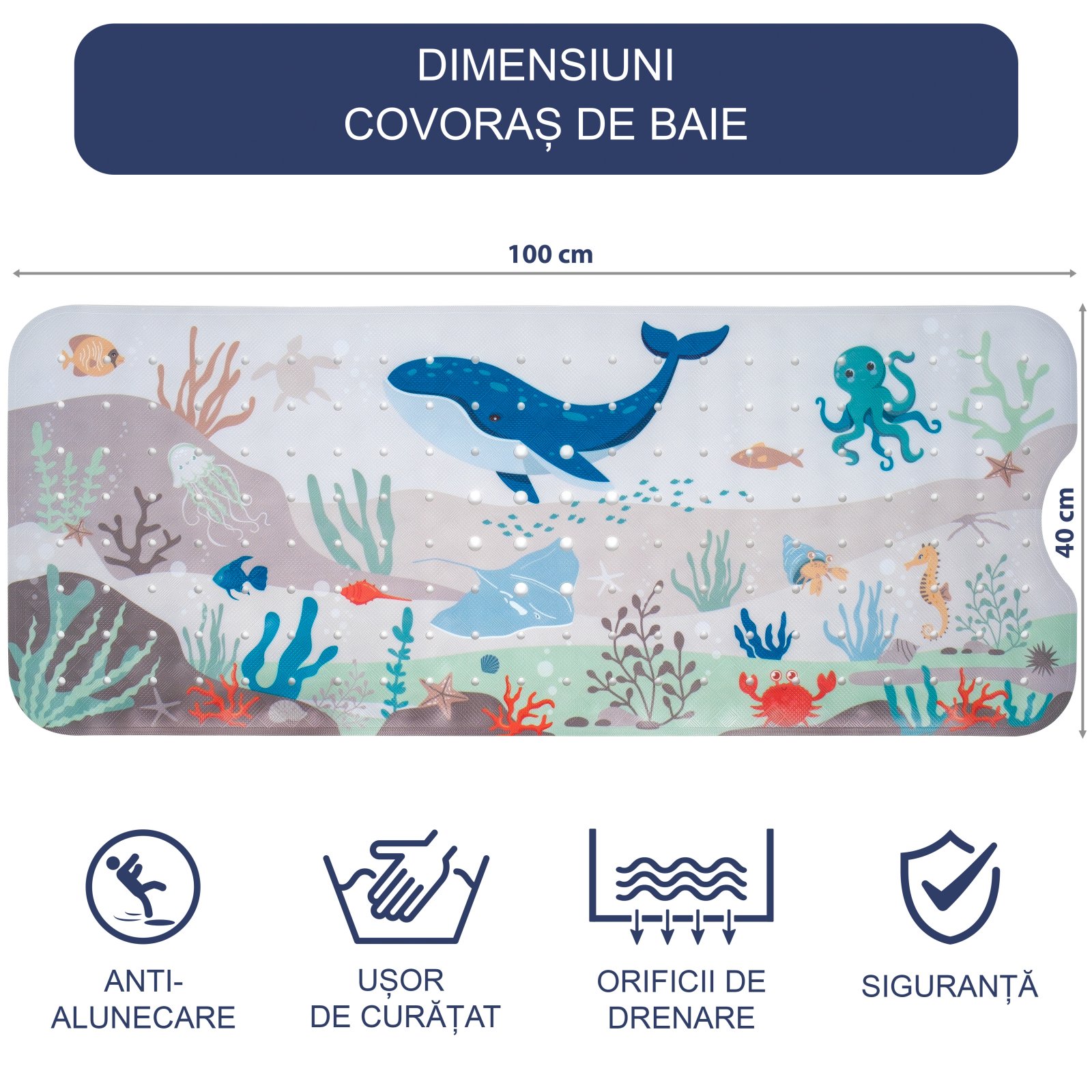 Covoras pentru cada, anti-alunecare, FizioTab®, 100×40 cm, Balena