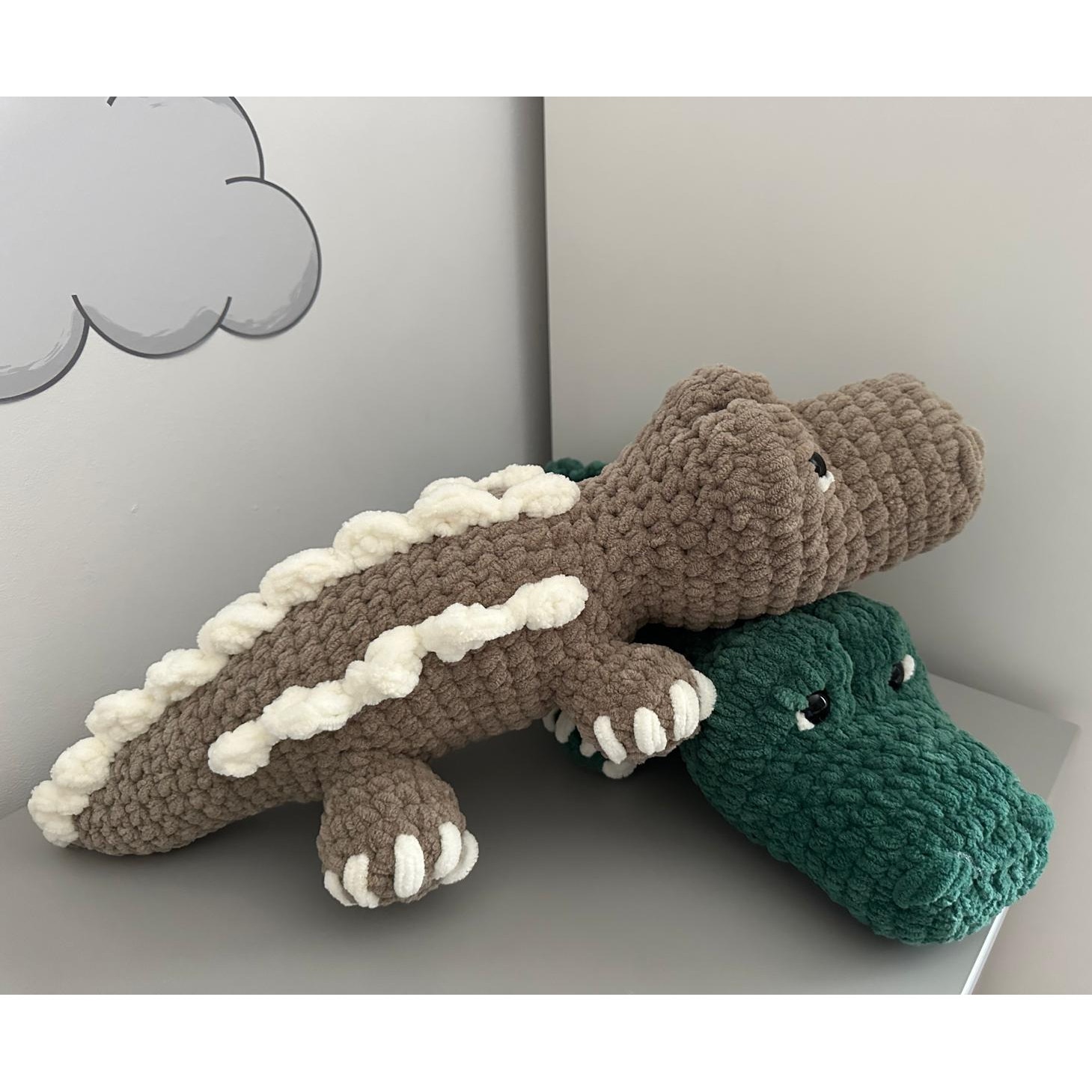 Crocodil crosetat manual cu fir antialergic plusat, Forest, umplutura hipoalergenica, 45cm