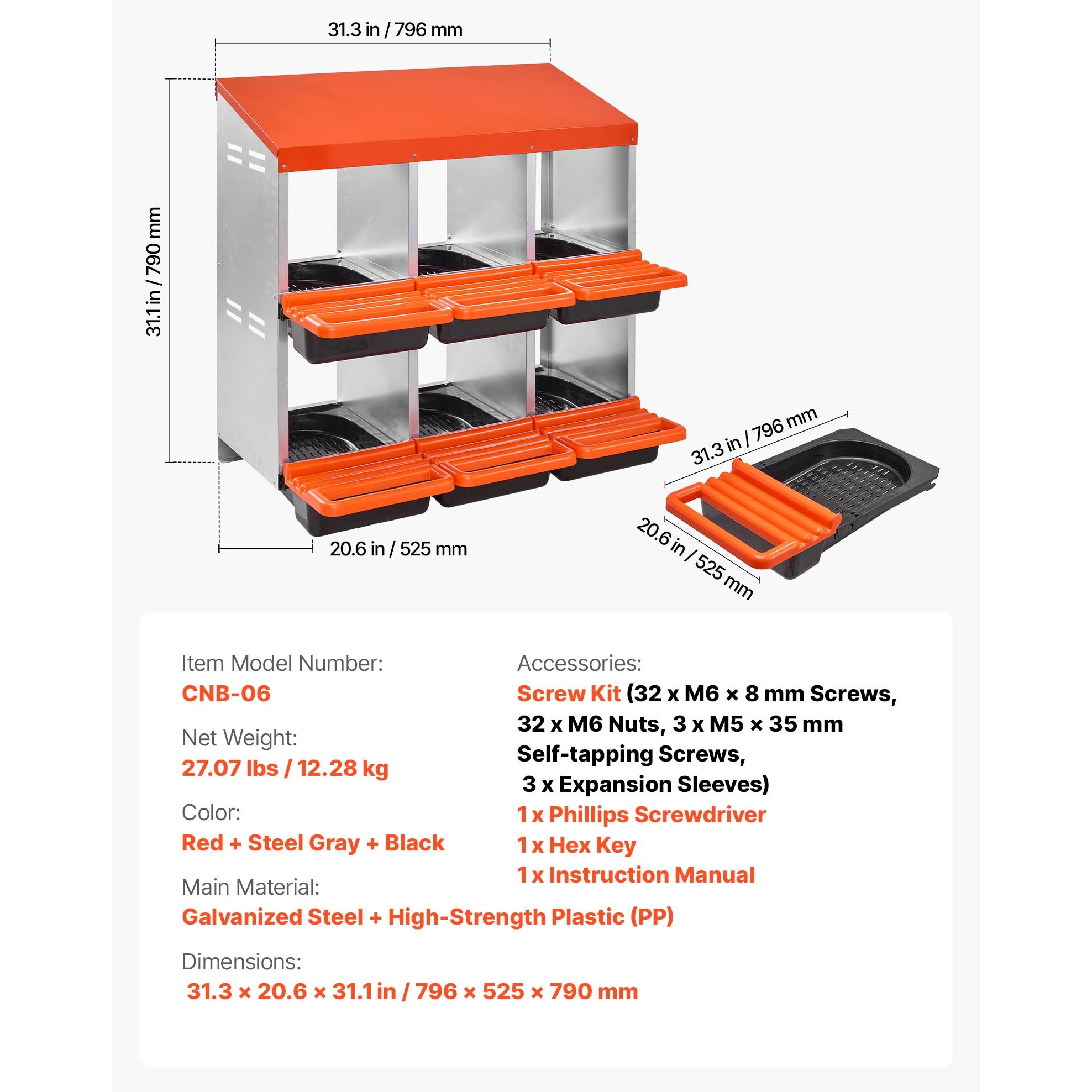 - Dimensiuni produs: 796 x 525 x 790 mm (31,3 x 20,6 x 31,1 in)