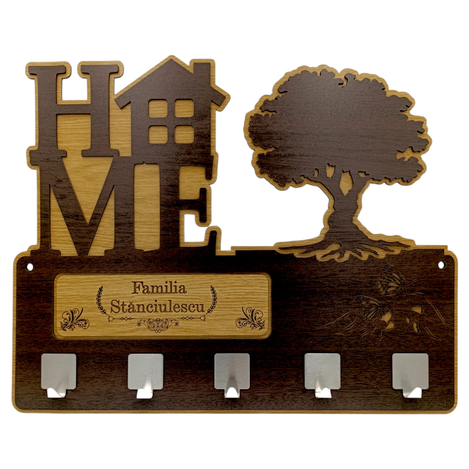 Cuier pentru perete, cadou personalizat cu mesaj standard personalizat cu Numele Familiei", dimensiune 40x30cm
