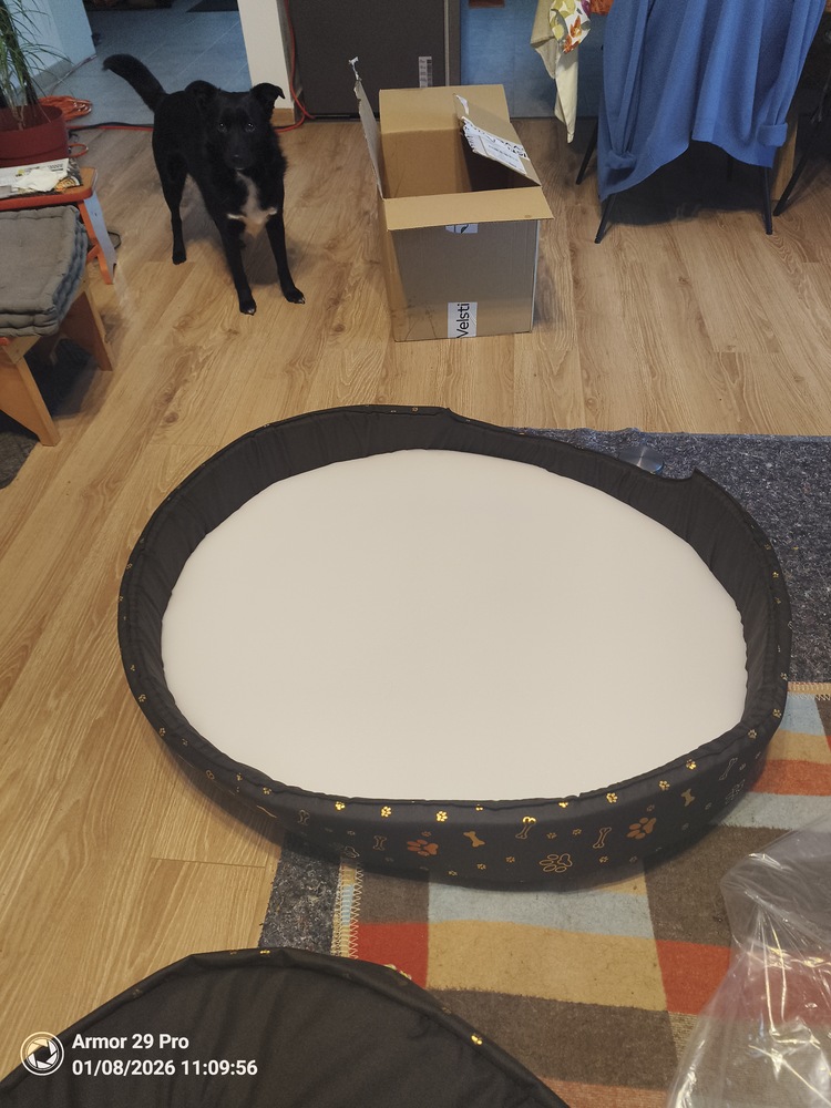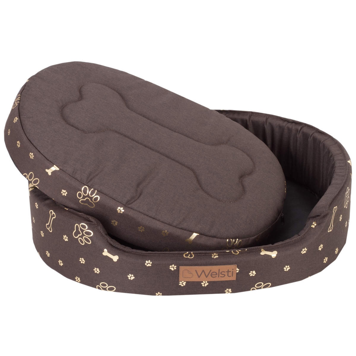 Culcus caini, patut caine talie mare, moale, impermeabil, perna si husa detasabile, saltea caini se poate spala la masina, maro, M, 58x47 cm
