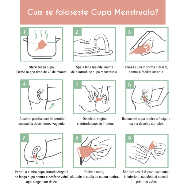 Folosesc cupa de 2 luni și pana acum sunt foarte mulțumită de ea. Începe a fie din ce în ce mai ușor de utilizat cu fiecare menstruatie (e prima cupa pentru mine). Am scurtat codita de câteva ori pana am ajuns la lungimea confortabila pentru mine. Recomand in locul tampoanelor obișnuite!