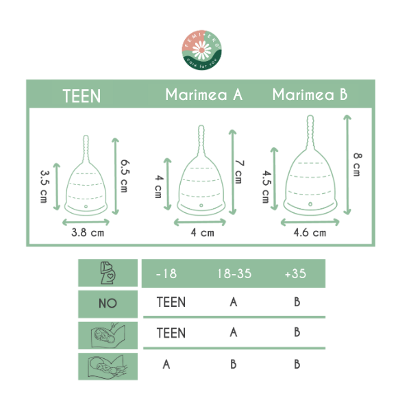 Marimea XS - pentru adolescente si femei cu flux scazut, pana in 18 ani, fara nasteri, cervix jos.
