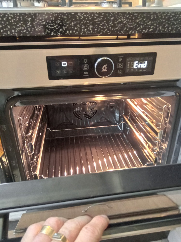 Setand modul autocuratare, interiorul cuptorului pirolitic atinge o temperatura extrem de inalta (aproximativ 470 °C) si transforma toate resturile de alimente in cenusa, care este usor de indepartat.