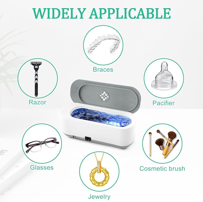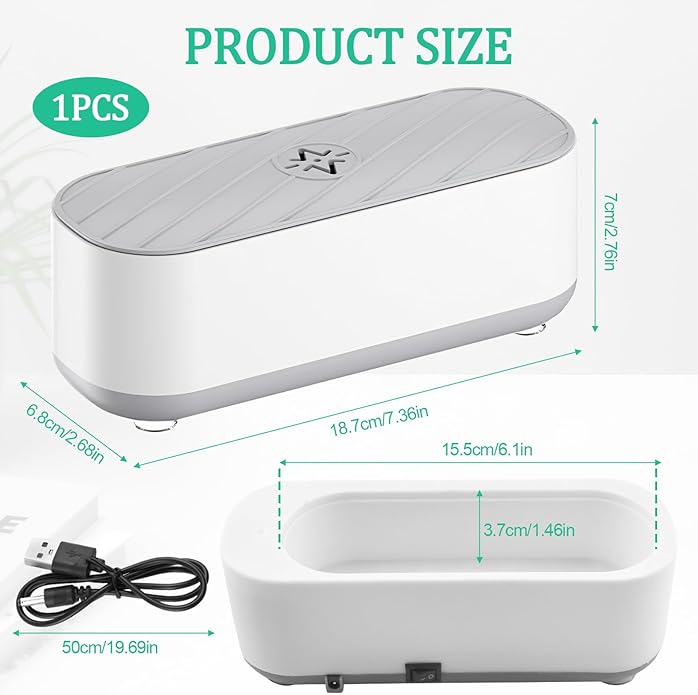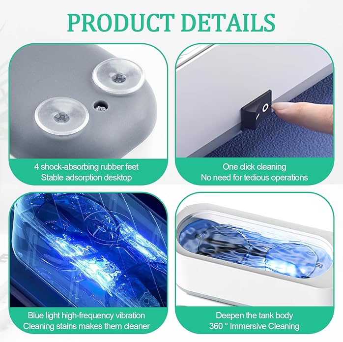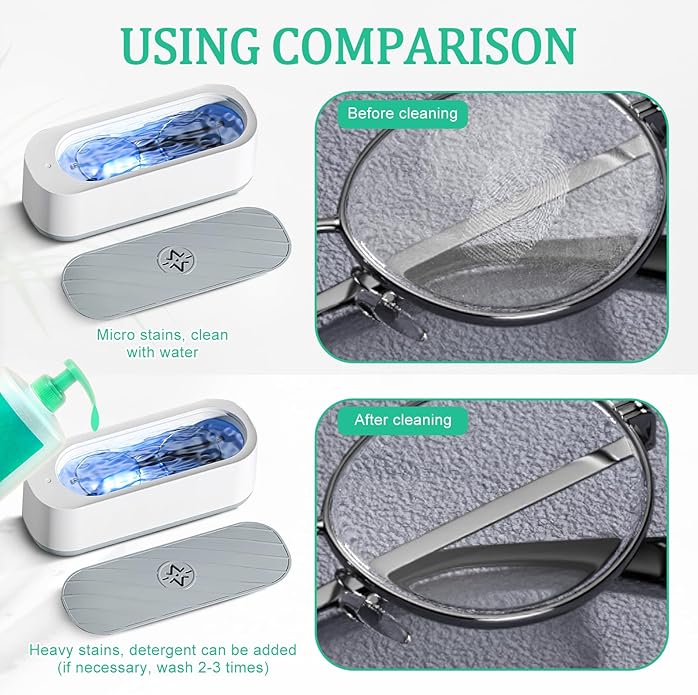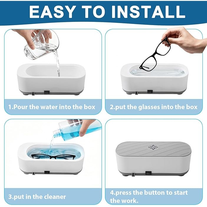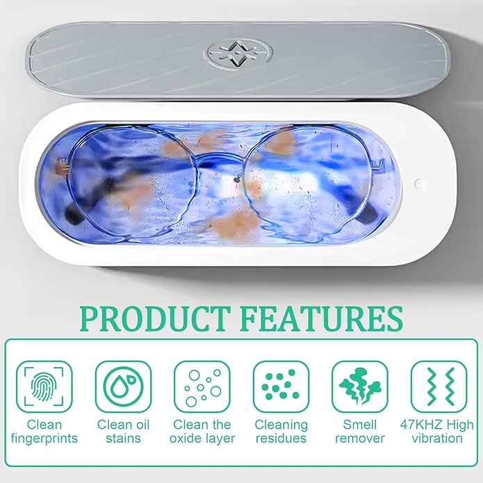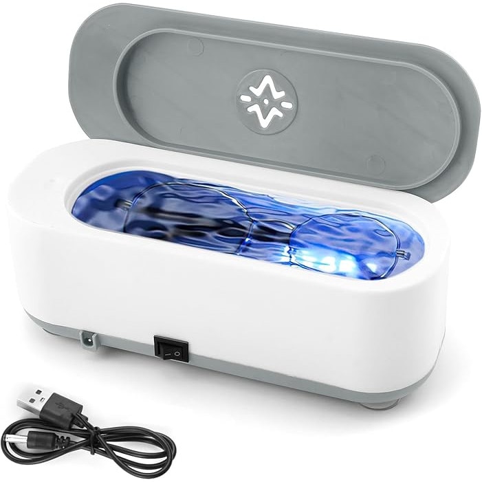 Curatator ultrasonic portabil, capacitate 300ml, design compact, cu lumina albastra, pentru ochelari, bijuterii, ceasuri