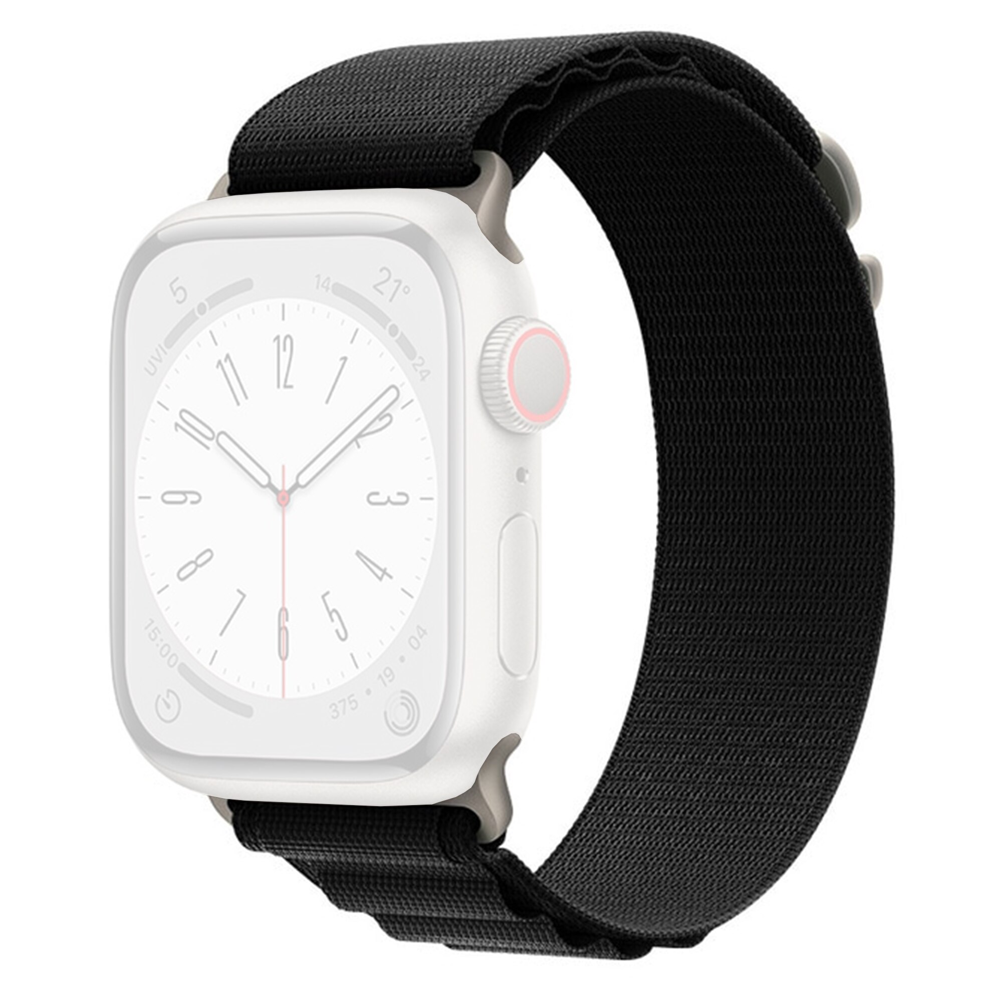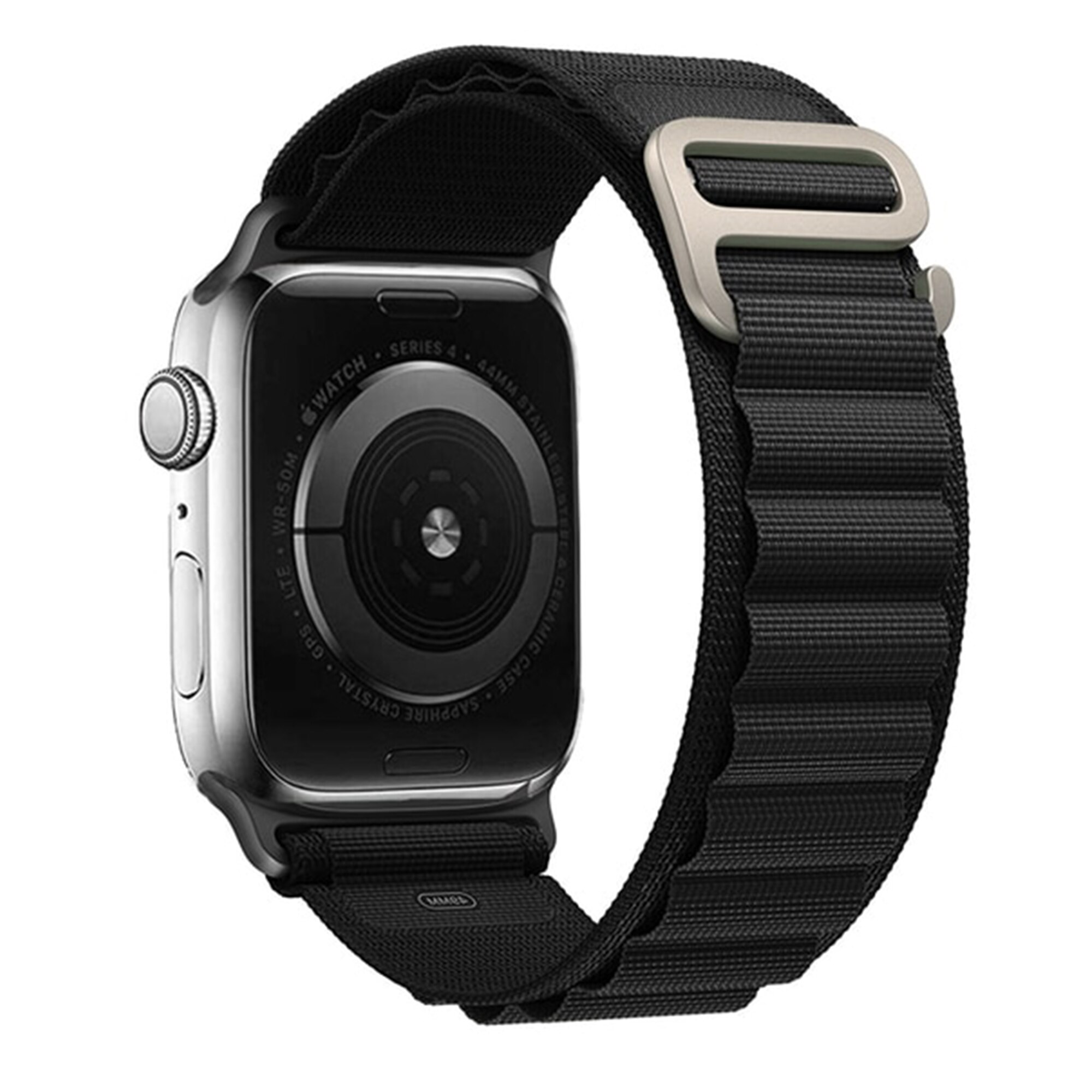 Curea din material textil WatchBand™ Alpine, Compatibila cu Apple Watch 1/2/3/4/5/6/7/8/SE/Nike+/Ultra - 38/40/41 mm, Negru