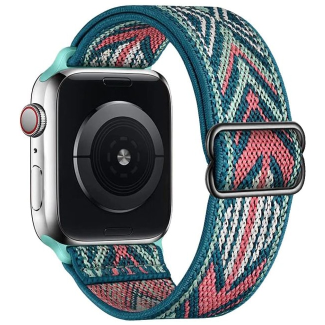 Curea Elastica din Nylon, Compatibila cu Apple Watch, Ajustabila, Bohemia Verde cu Model, 42/44/45/49mm