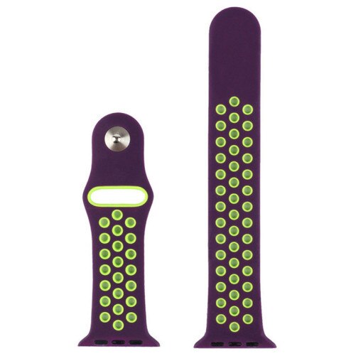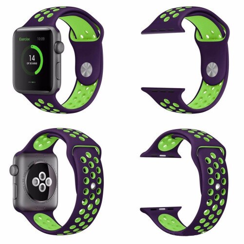 Curea iUni compatibila cu Apple Watch Ultra/SE/8/7/6/5/4/3/2/1, 40mm, Silicon Sport, Purple/Green