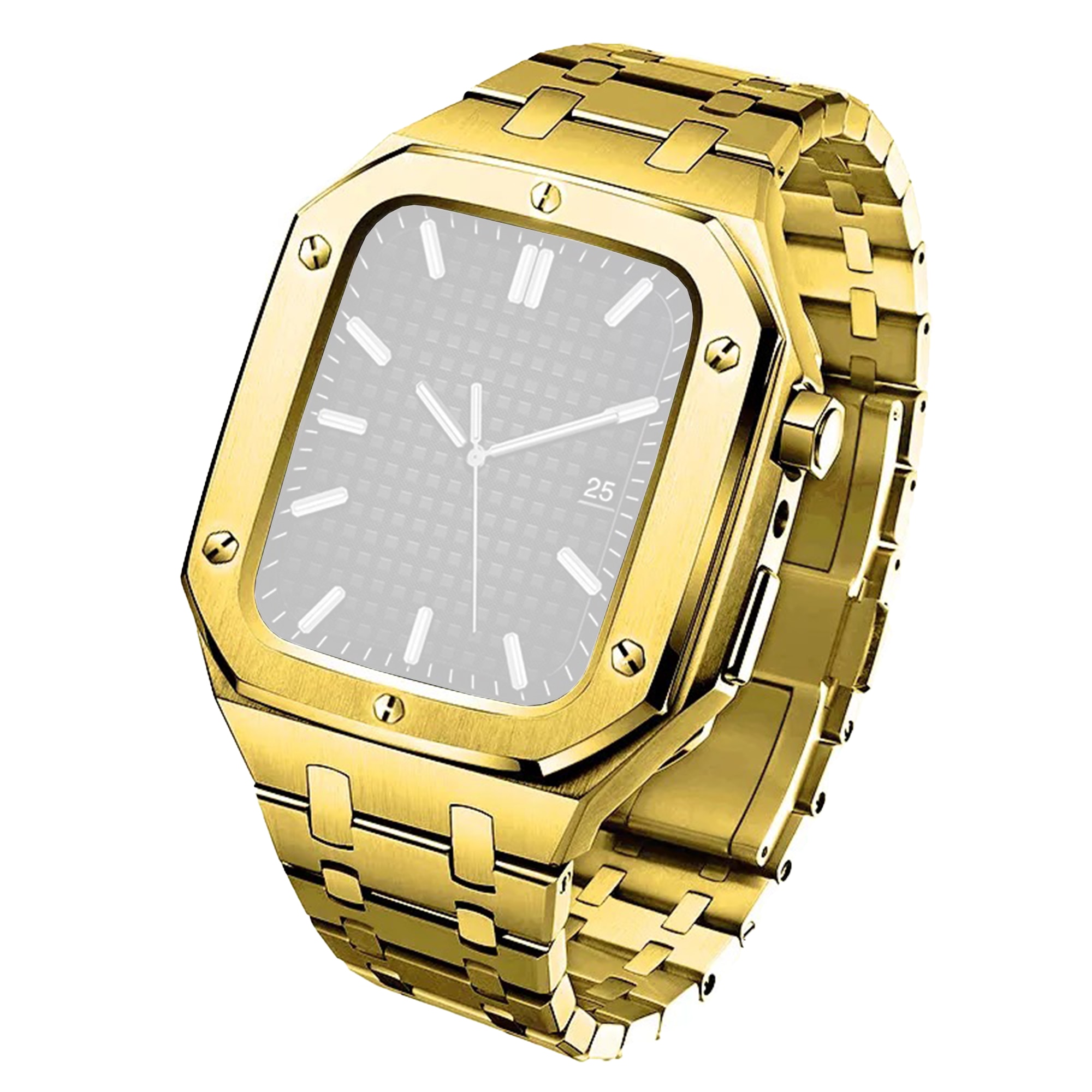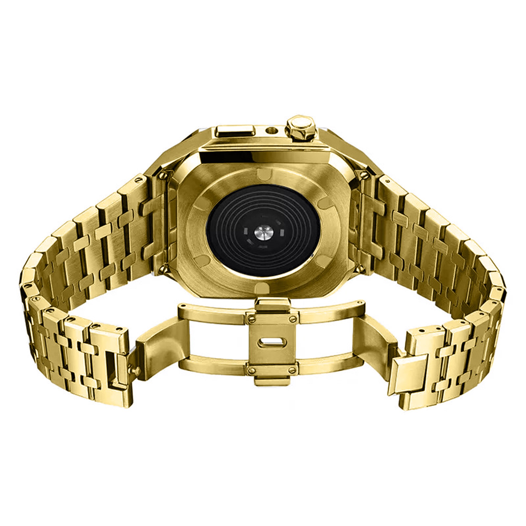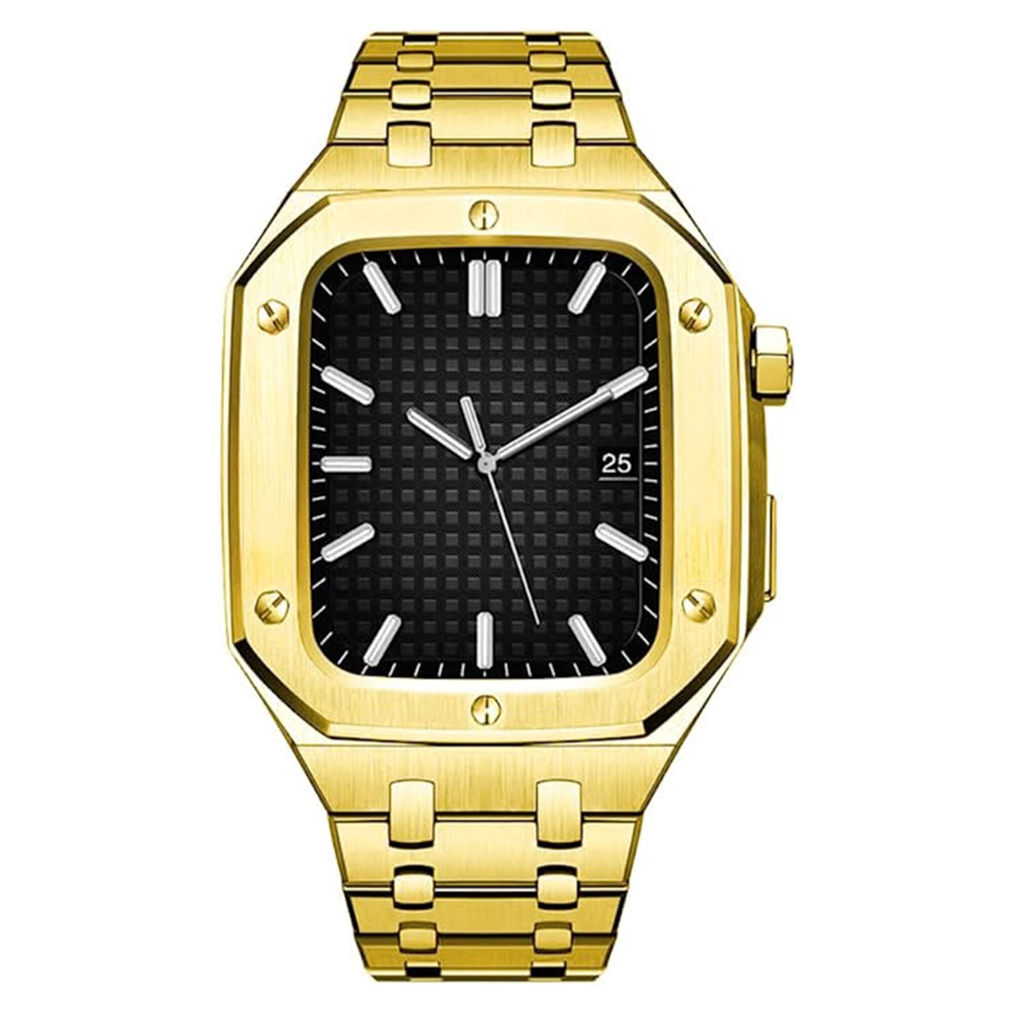 Curea metalica WatchBand™ Chronos, Compatibila cu Apple Watch 1/2/3/4/5/6/7/8/SE/Nike+ - 45 mm, Auriu
