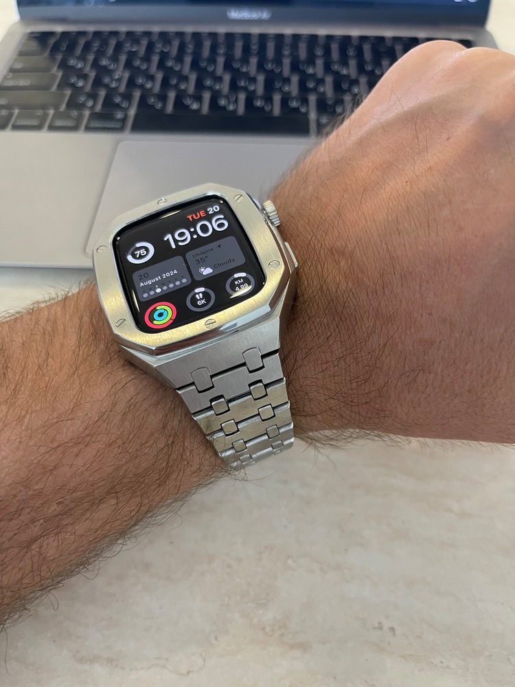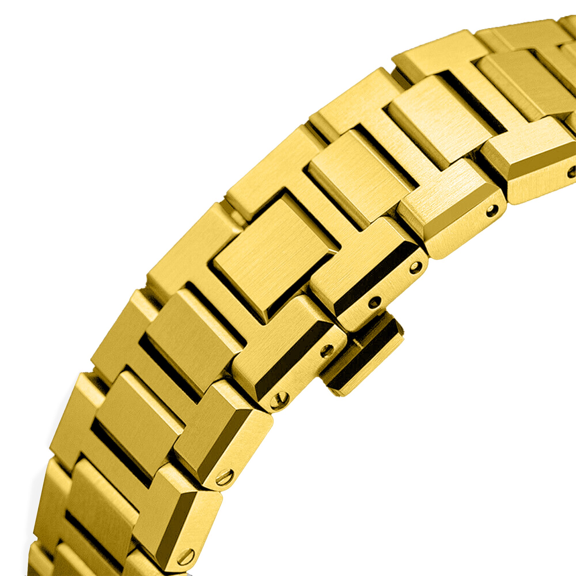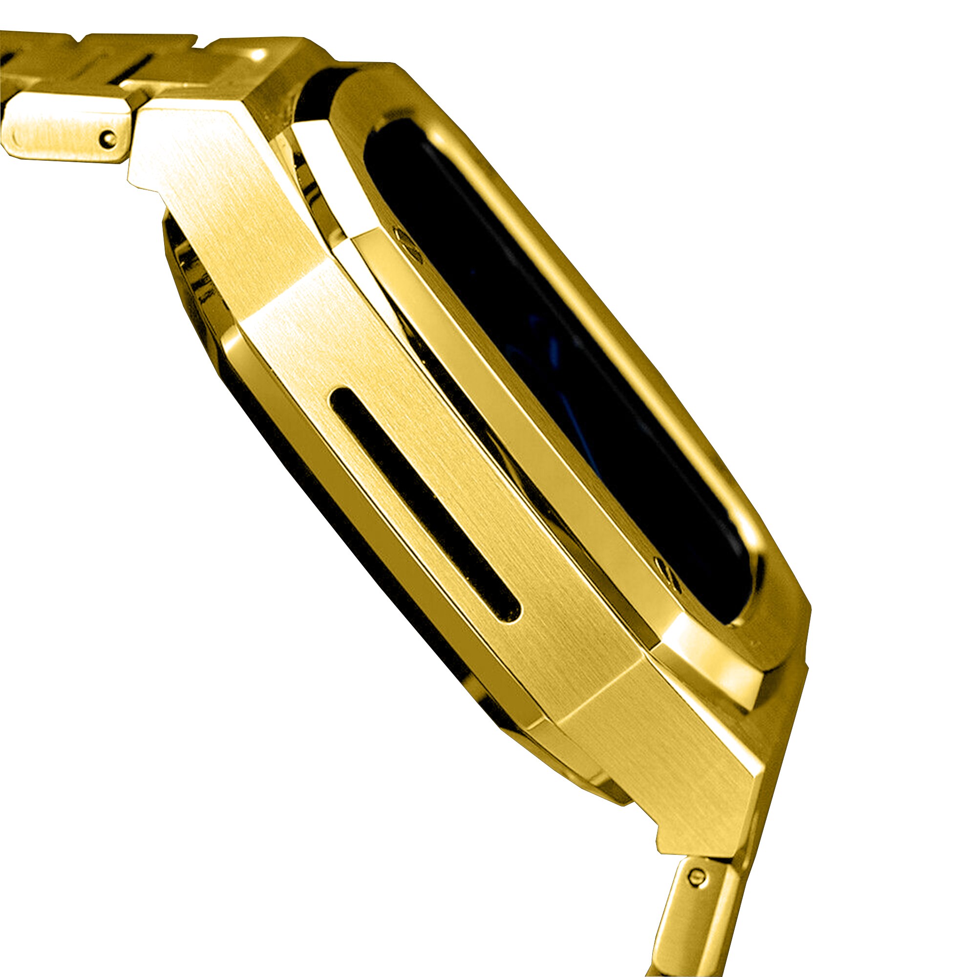 Curea metalica WatchBand™ Chronos, Compatibila cu Apple Watch 1/2/3/4/5/6/7/8/SE/Nike+ - 45 mm, Auriu