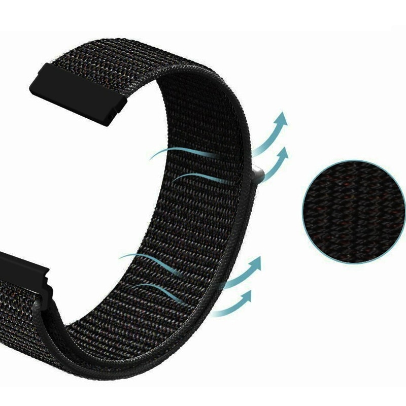 Curea Nylon DALBAN® 20 mm, compatibila cu Huawei Watch GT 2 42mm, Samsung Galaxy Watch 4 40/42/44/46 mm, Negru