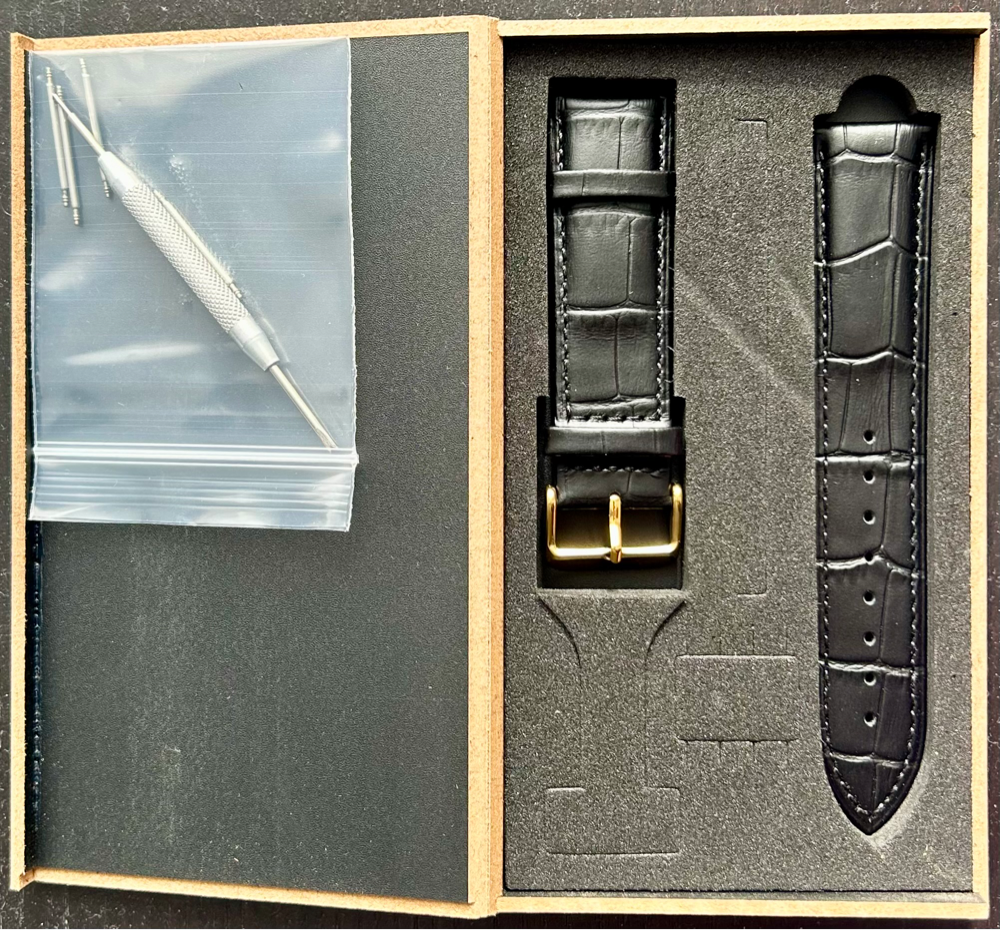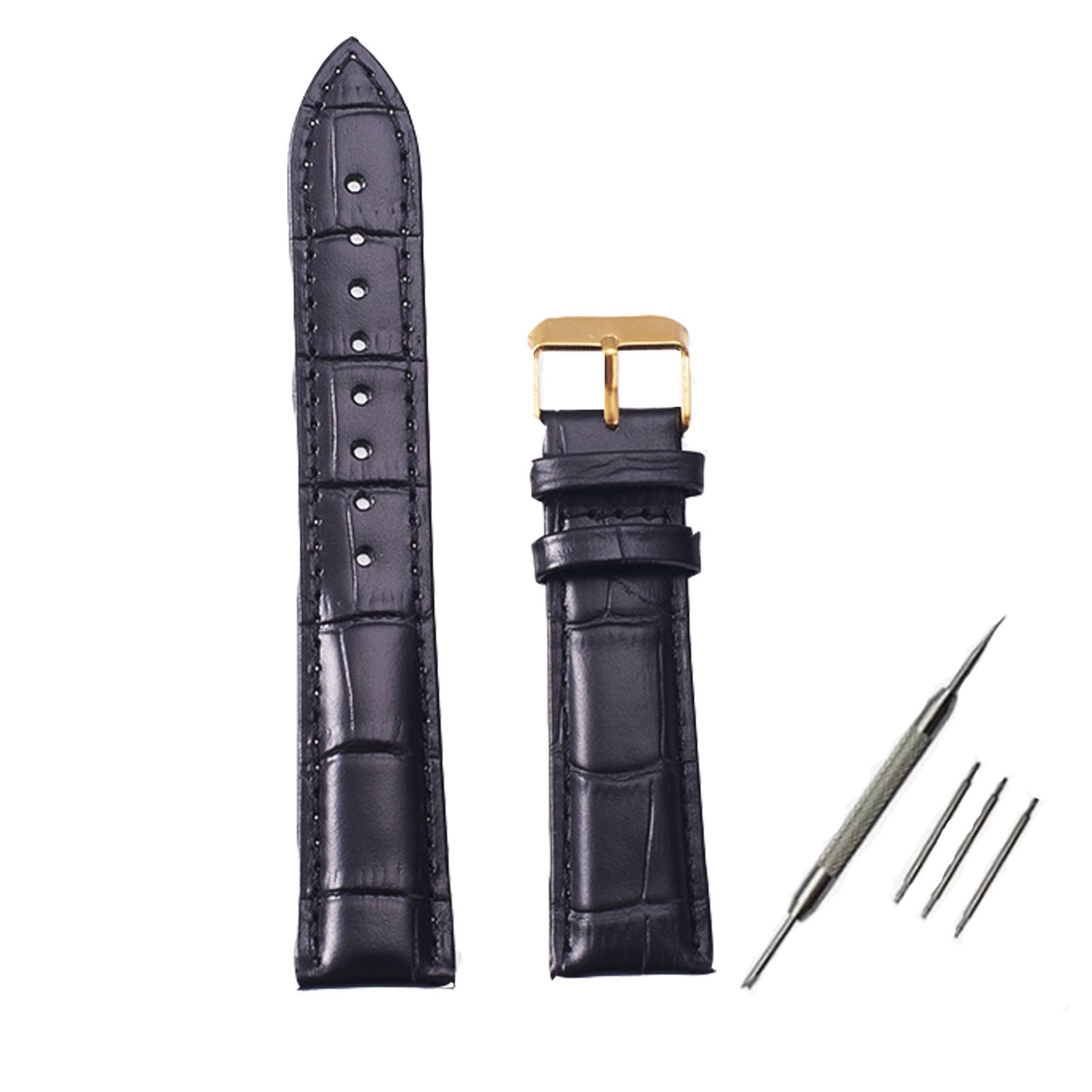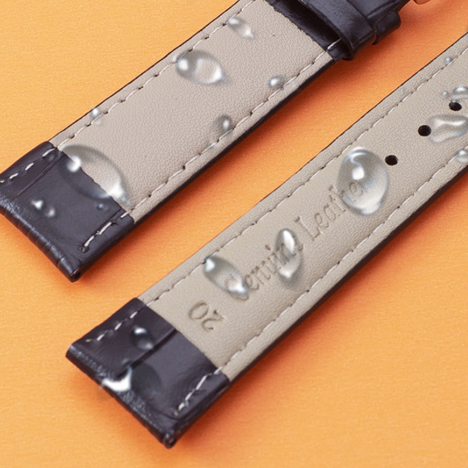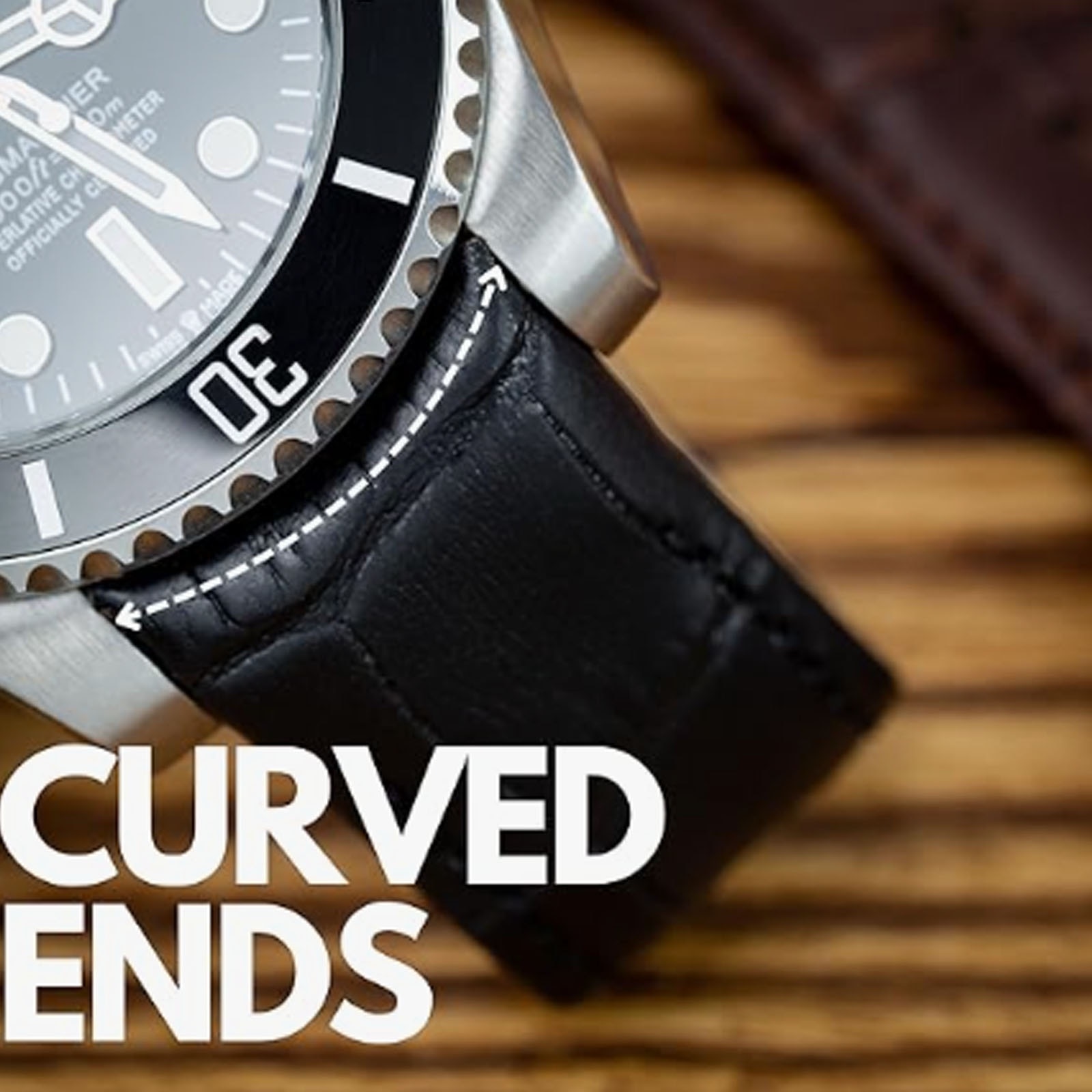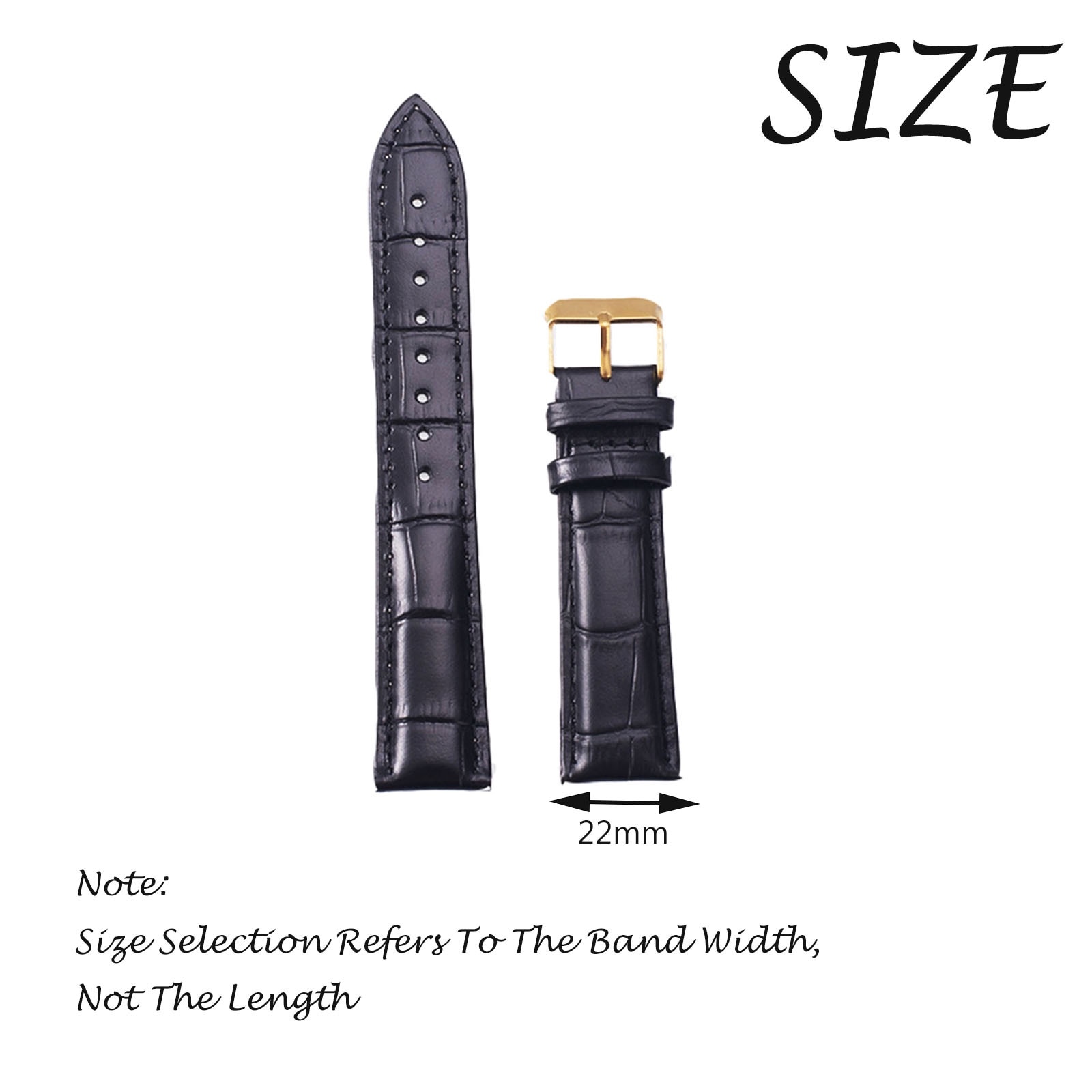 Curea piele naturala textura croco, Hggzeg, Curea ceas, Cusatura neagra, piele naturala veritabila, Design elegant, Impermeabil si rezistent la mirosuri, Clasic, 22mm, Negru Mat