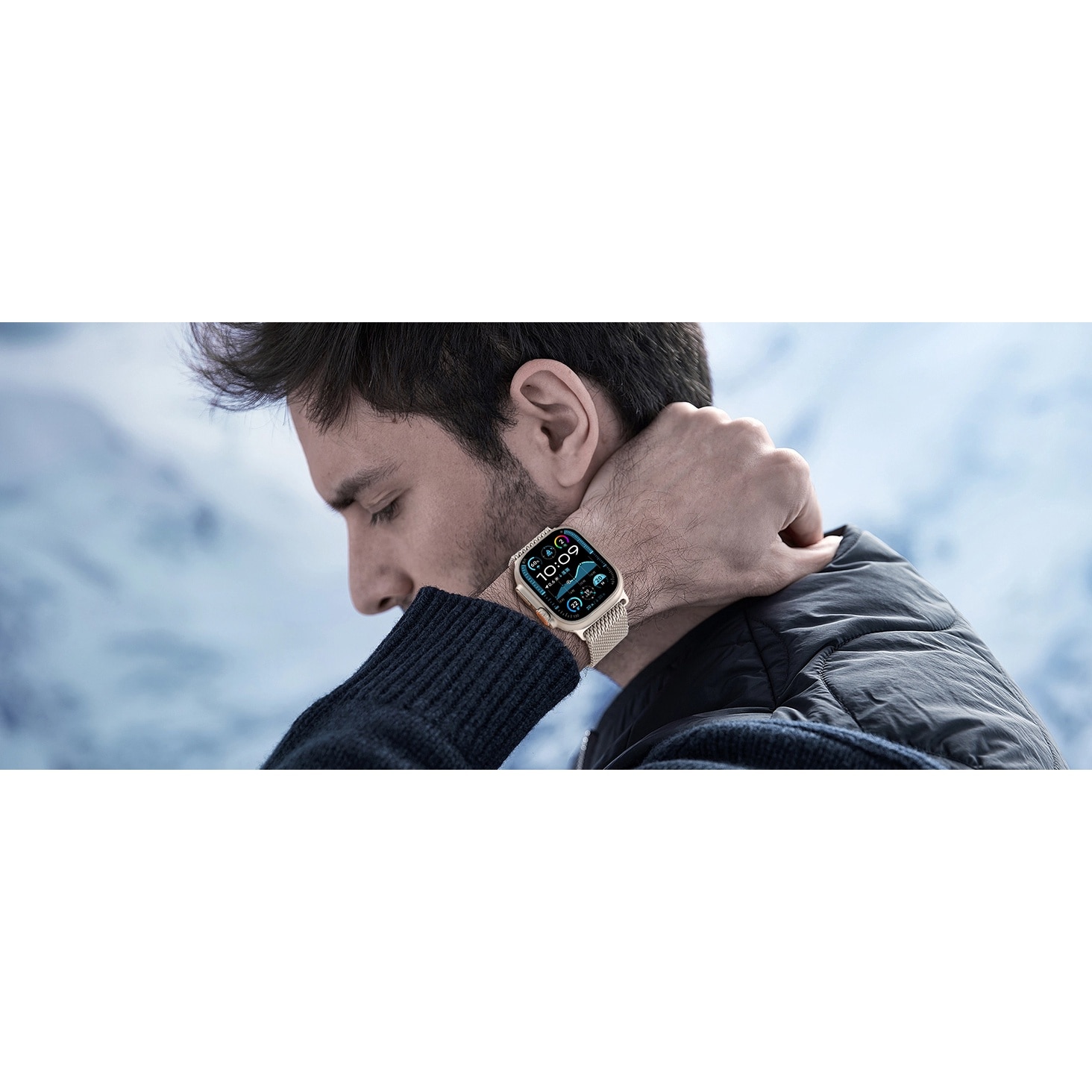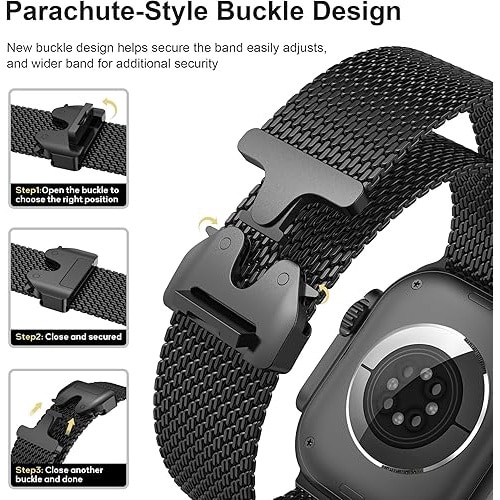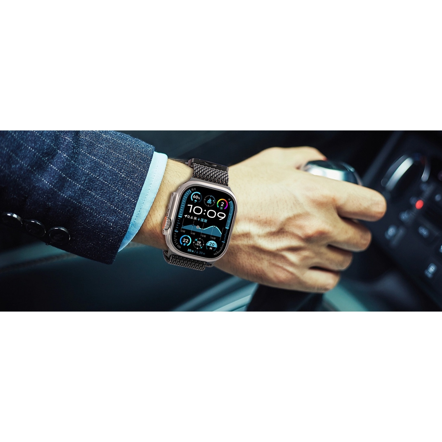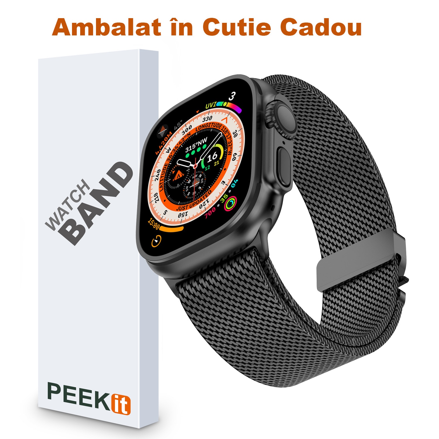 Curea tip Milanese din titan compatibila cu Apple Watch Ultra 2/1 49mm, Seria 10/9/8/7/6/SE/5/4/3/2/1 46mm/45mm/44mm/42mm, catarama magnetica reglabila – Negru