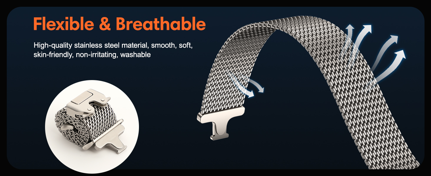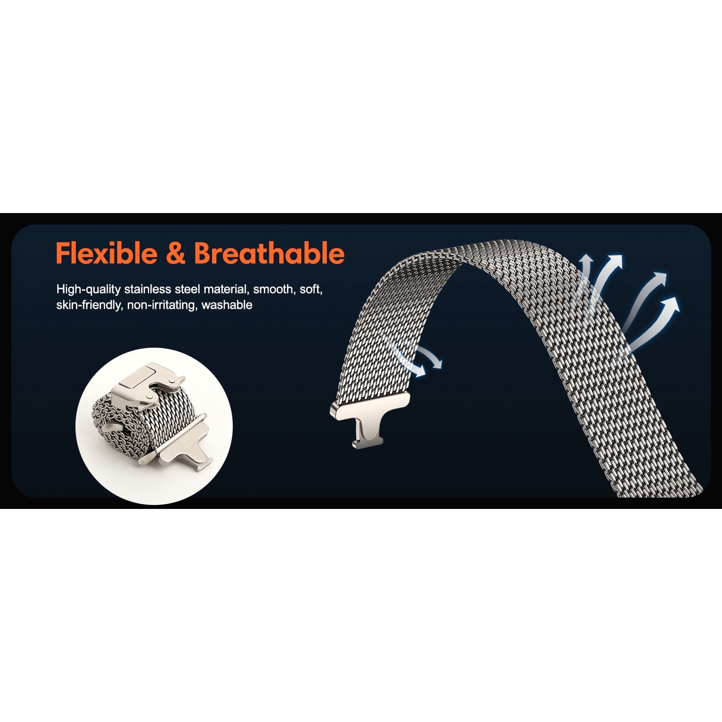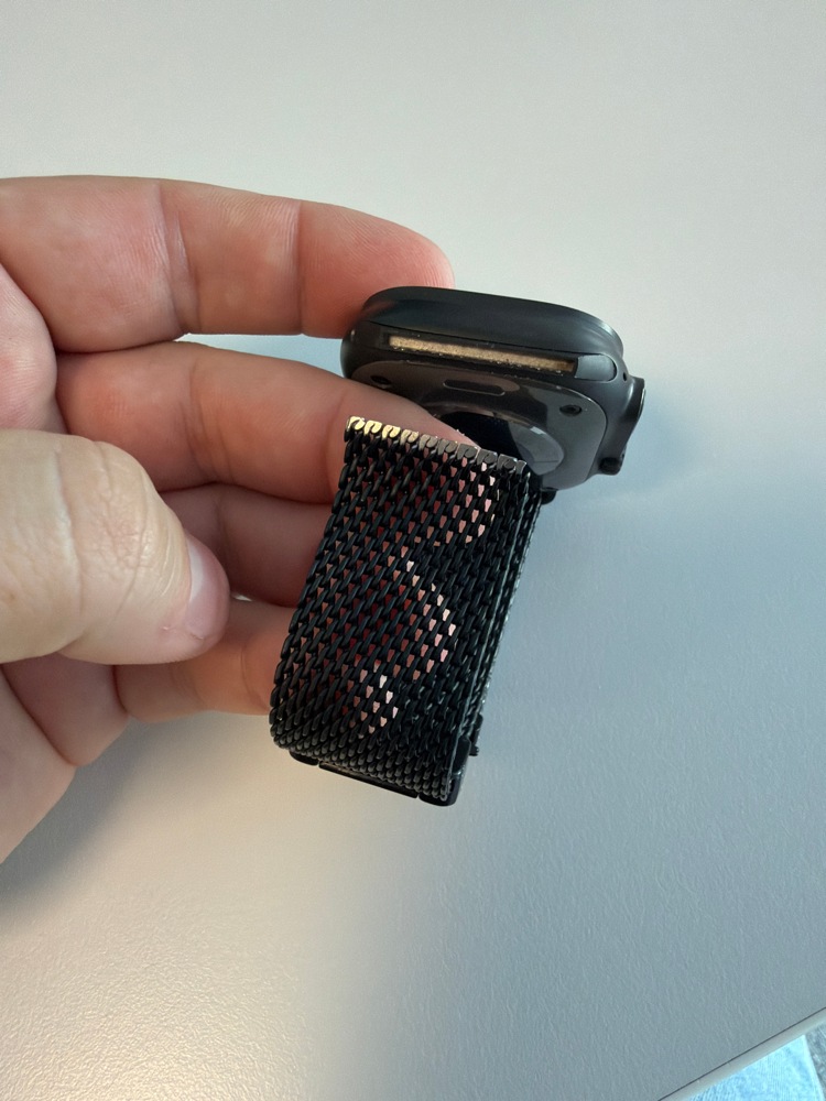Curea tip Milanese din titan compatibila cu Apple Watch Ultra 2/1 49mm, Seria 10/9/8/7/6/SE/5/4/3/2/1 46mm/45mm/44mm/42mm, catarama magnetica reglabila – Negru