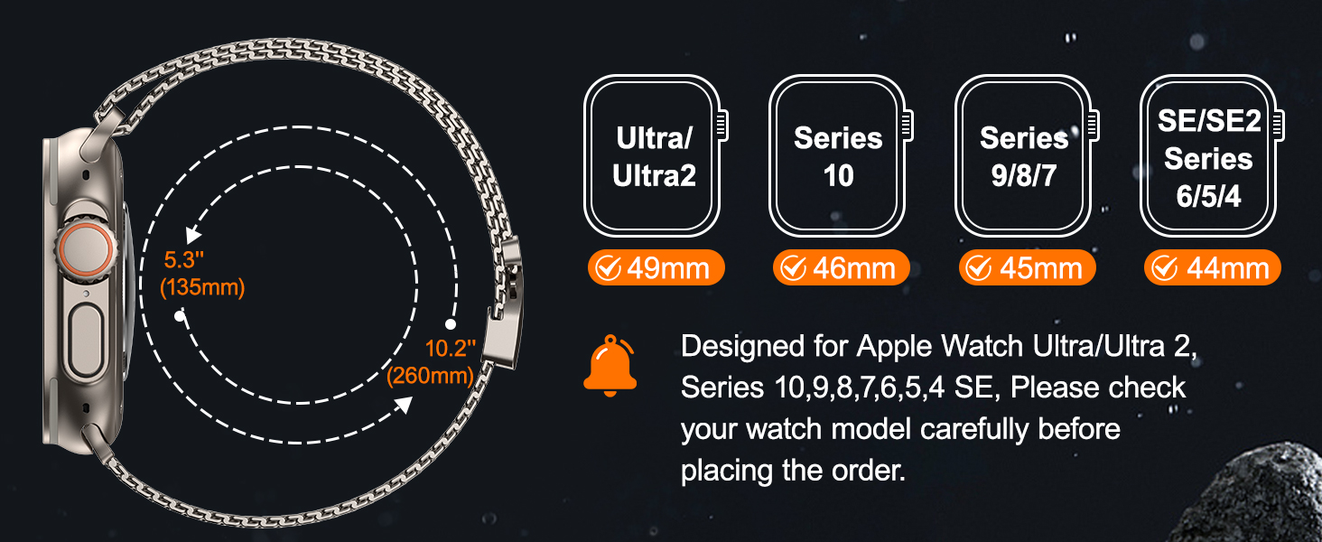 | Model compatibil | Watch Apple Watch Series 1/2/3/4/5/6/7/8/Ulta Watch Ultra 2 |