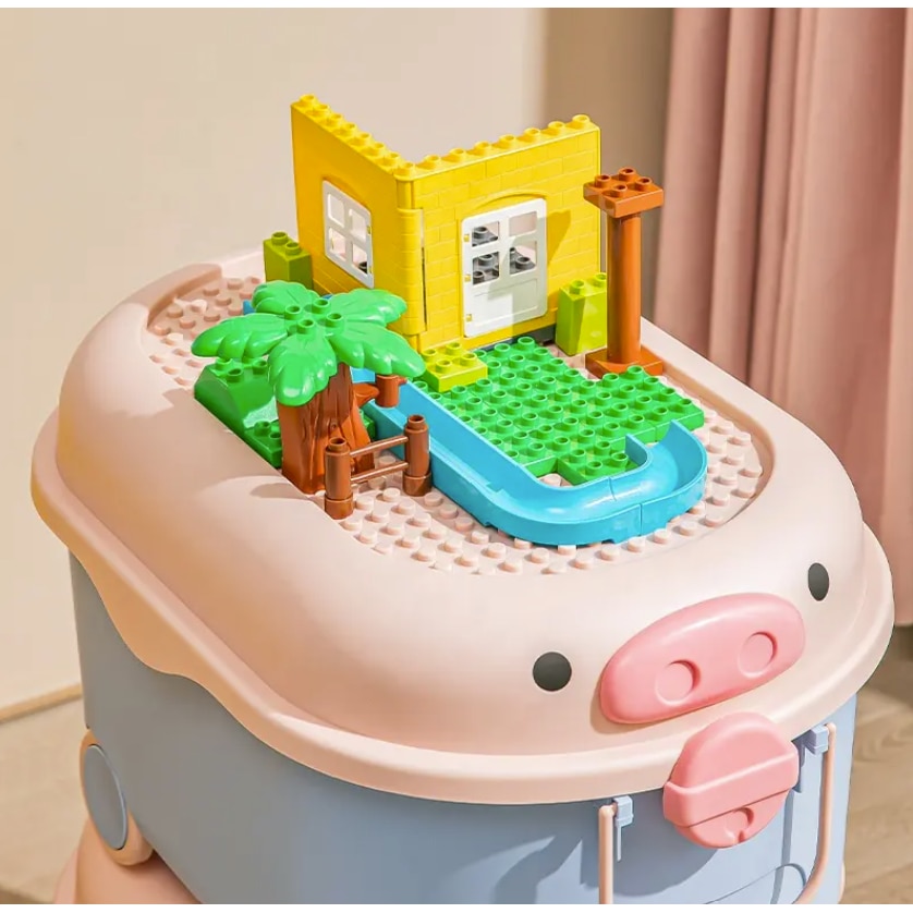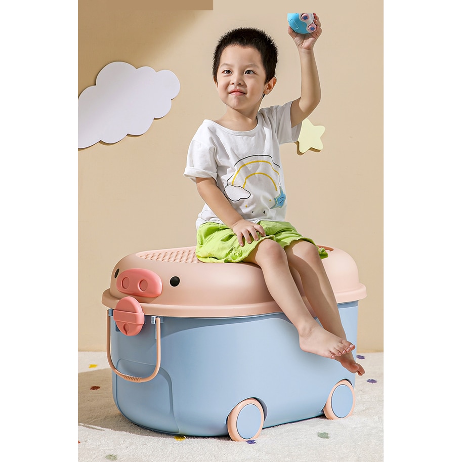 Cutie Depozitare Jucarii, Cu Roti, Porcusor, Polipropilena, Albastru/Roz, 56 l, 57x38x33 cm