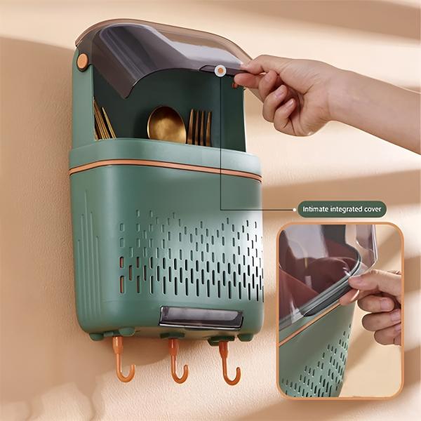Cutie depozitare suspendata pentru ustensile de bucatarie, Mormark, Utensilko, 19 x 30 x 8.5 cm - Verde