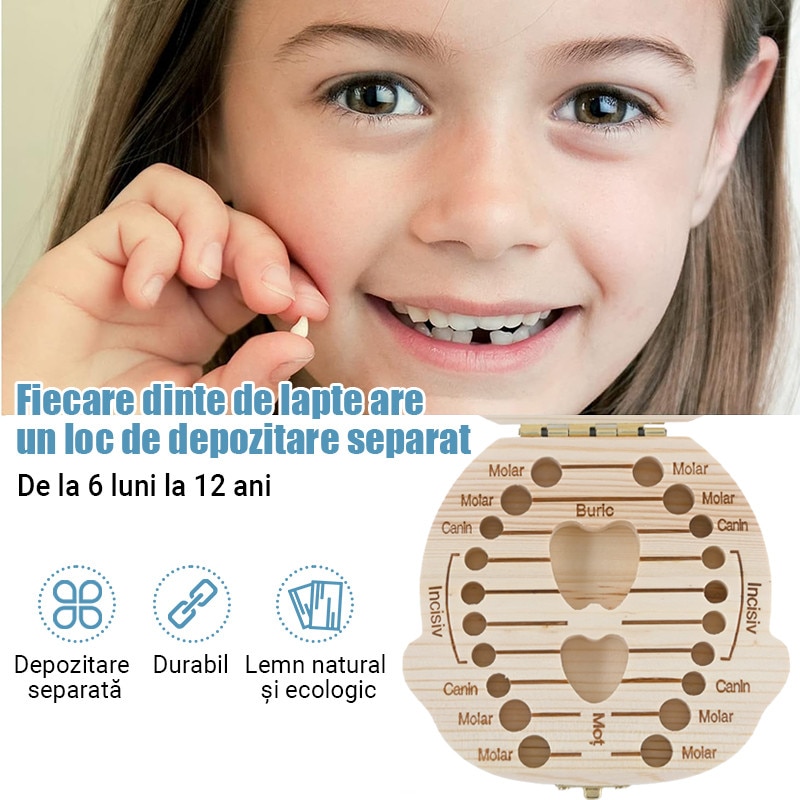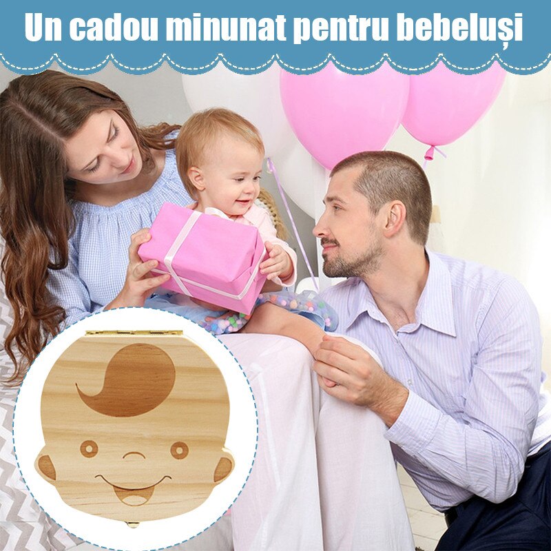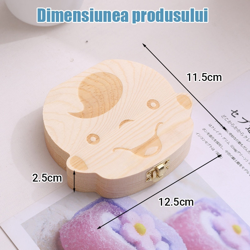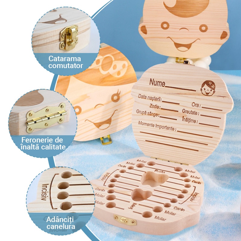 Cutie din lemn tip suvenir pentru a stoca dinte de lapte, parul de nastere si umbilic, 22 gropi, natural si ecologic, potrivit pentru baieti, 12,5×11,5×2,5 cm