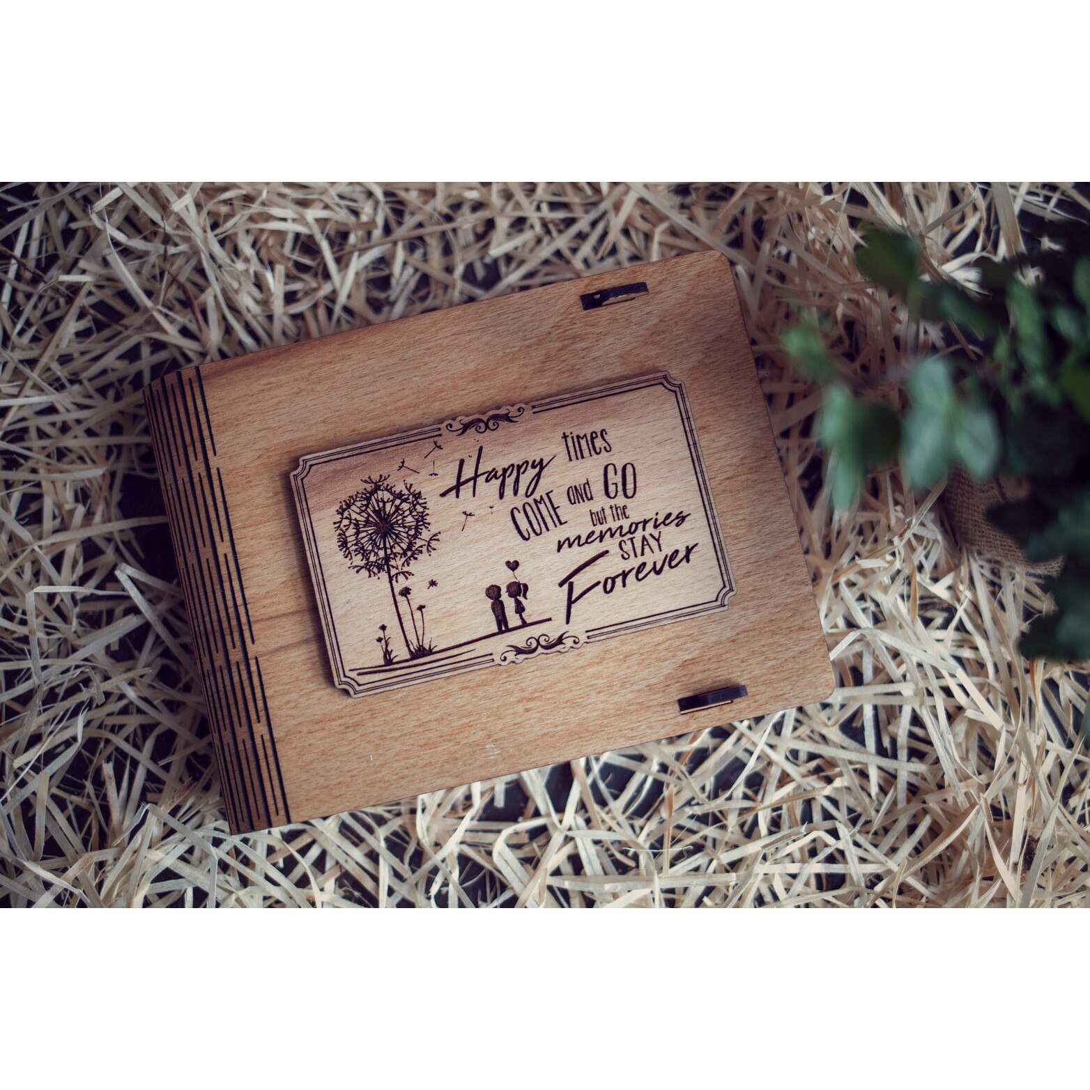 Cutie medie din lemn pentru stick USB VintageBox personalizata prin gravare model "Papadie" culoare stejar auriu