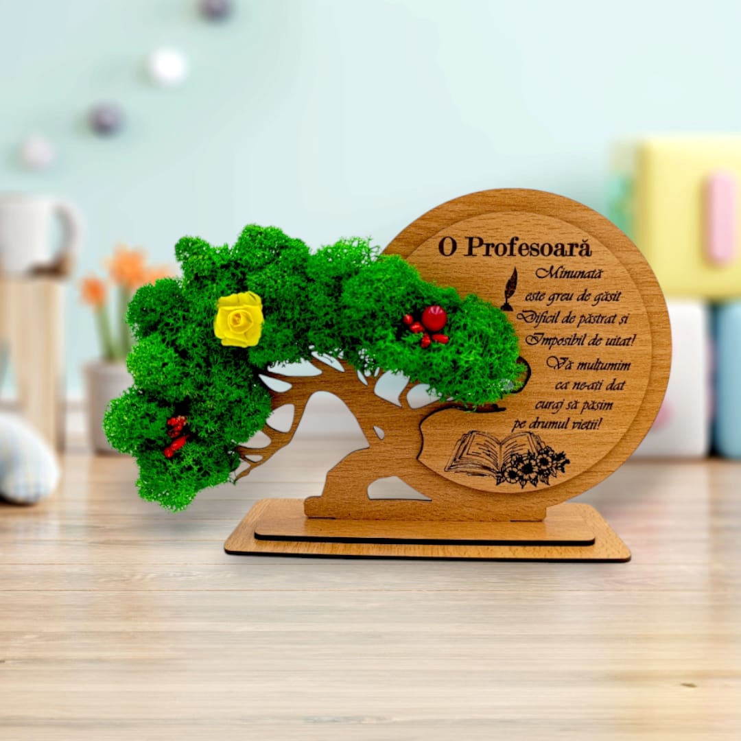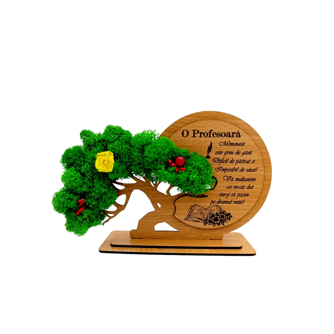 Decoratiune cadou, personalizat cu mesaj standard pentru profesoara, "O Profesoara minunata este greu de gasit", maro, dimensiune 30x19cm