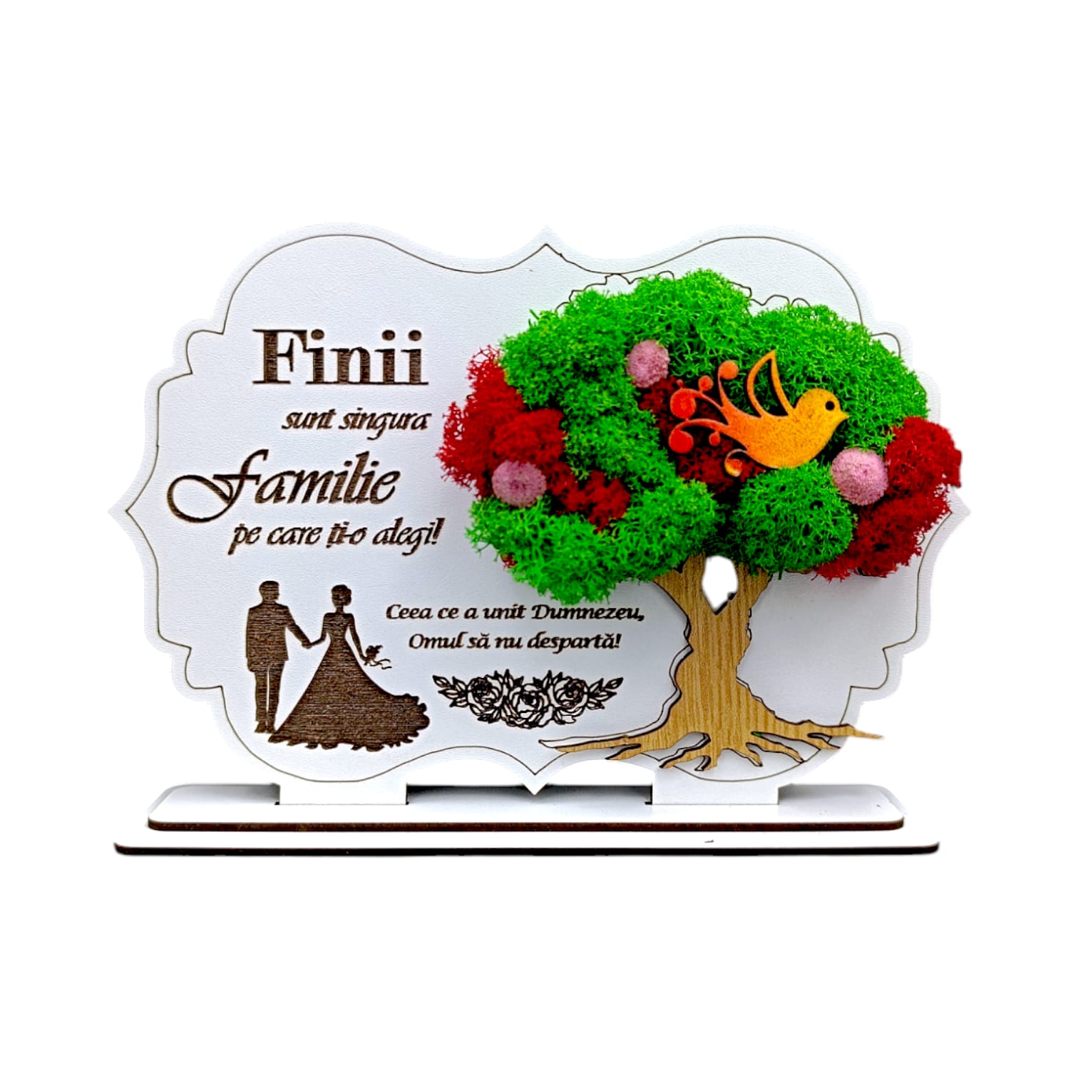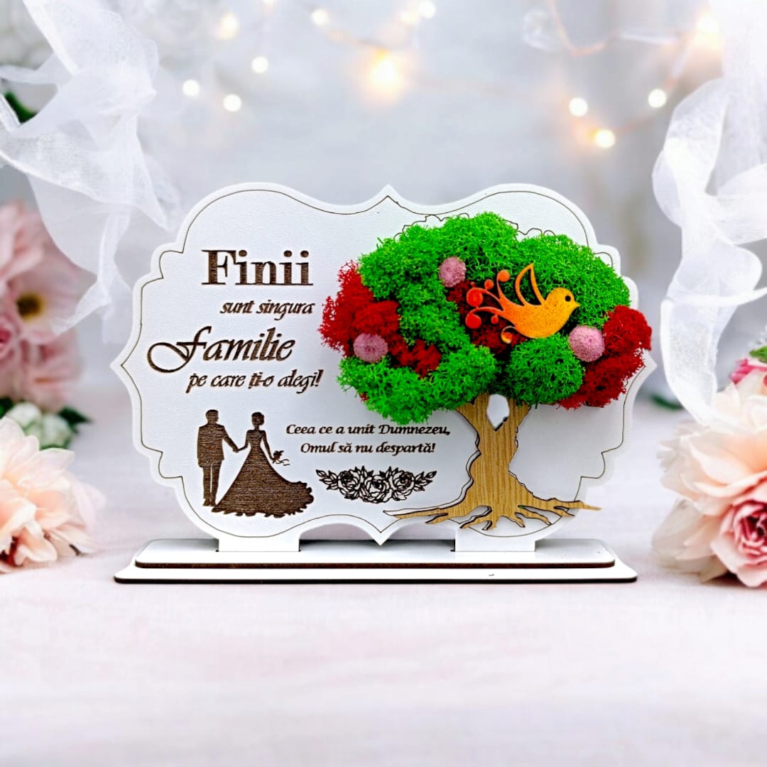 Decoratiune tablou cu suport, personalizat cu mesaj standard, cadou pentru "Fini", alb, dimensiune 21x14cm