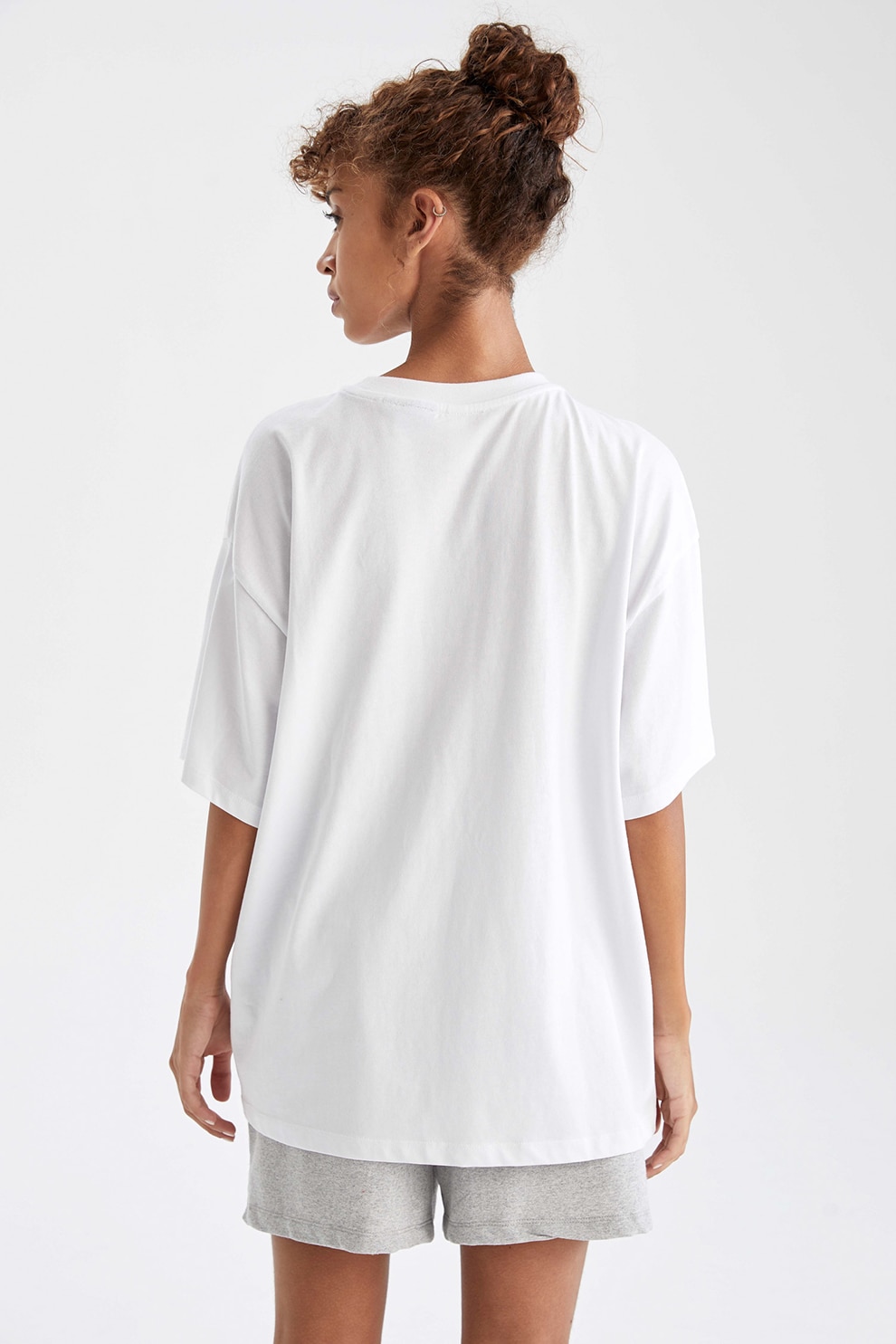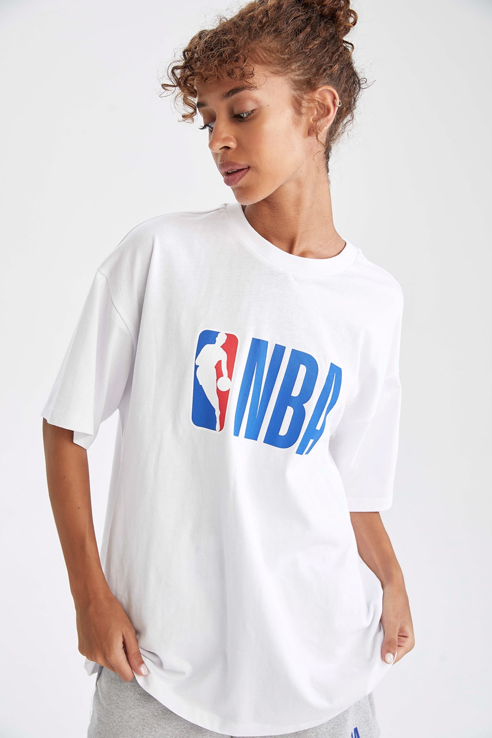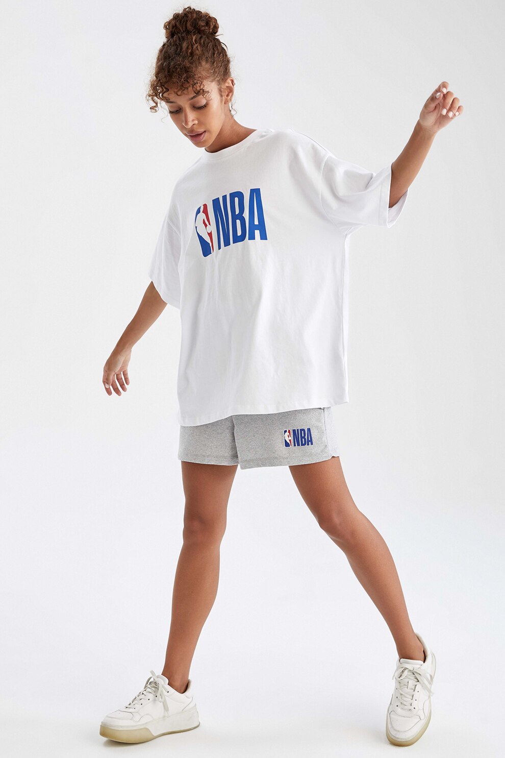 DeFacto - Tricou supradimensionat din bumbac cu tematica NBA, Alb/Albastru royal, 2XL