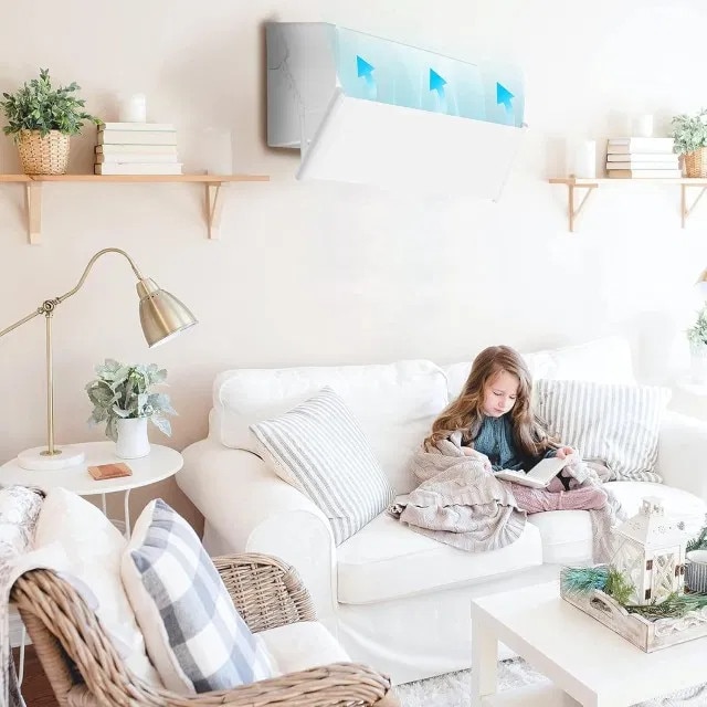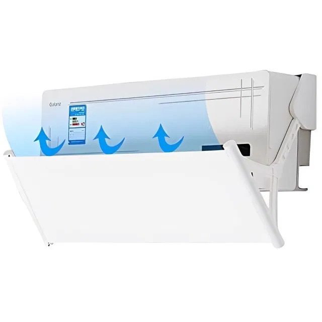 Se instaleaza cu banda adeziva (dimensiuni componenta din plastic cu parte adeziva: 26.5 x 4 cm), fara a deteriora aparatul de aer conditionat, peretele sau tavanul.