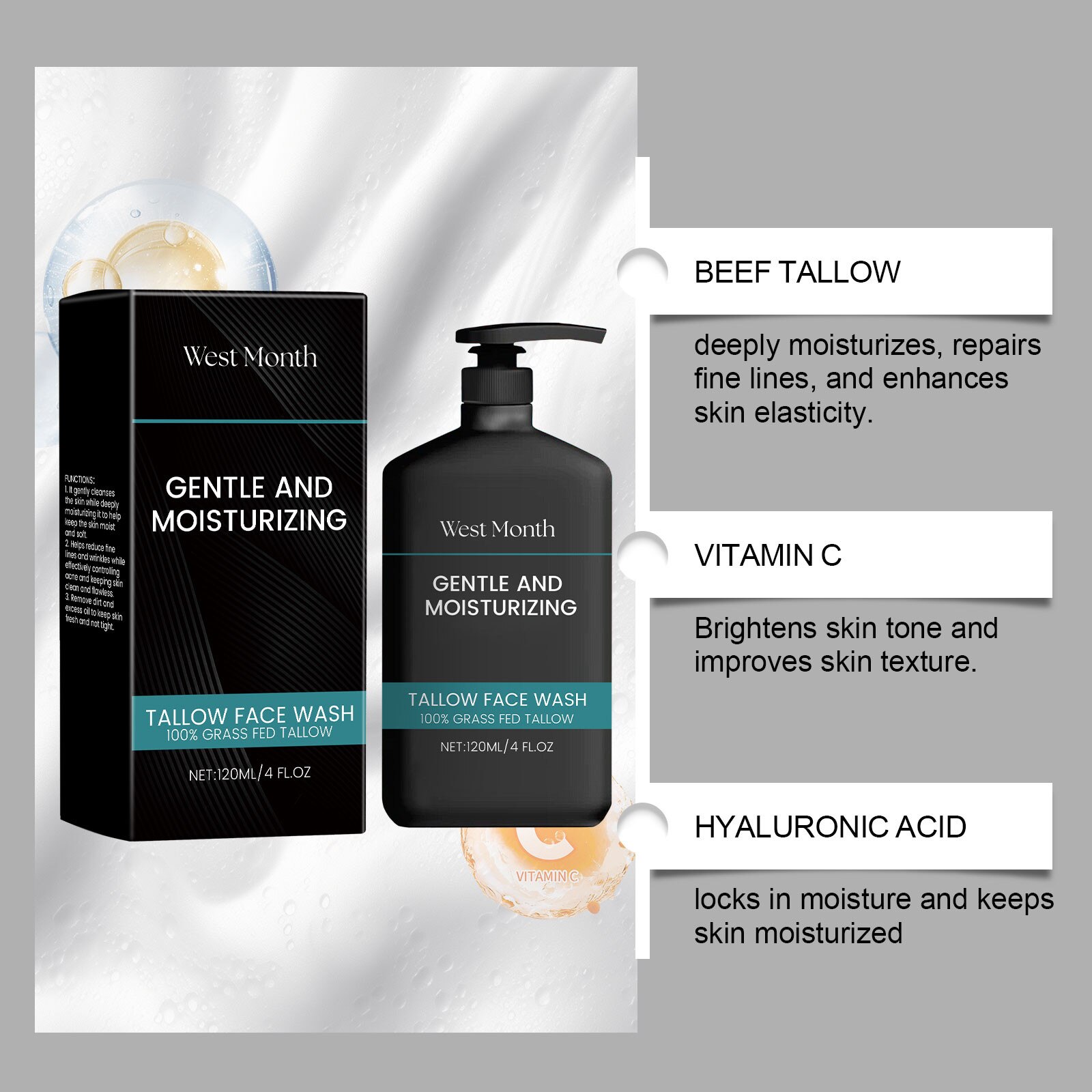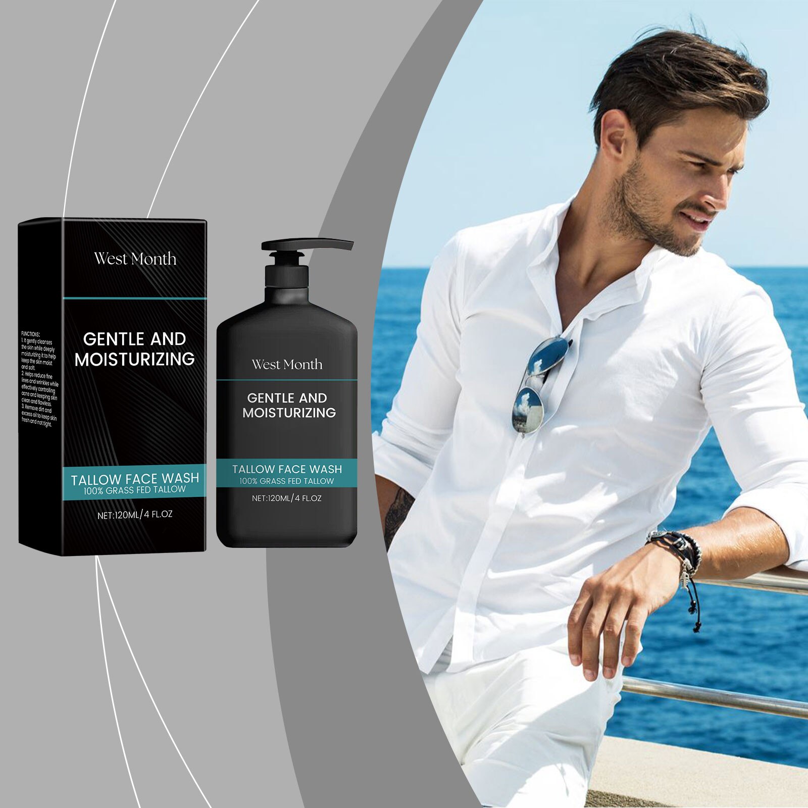 Demachiant pentru barbati West&Month, curatare delicata, ulei de coaja de portocala