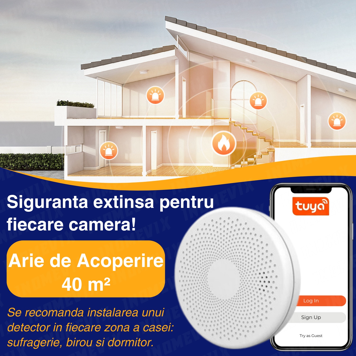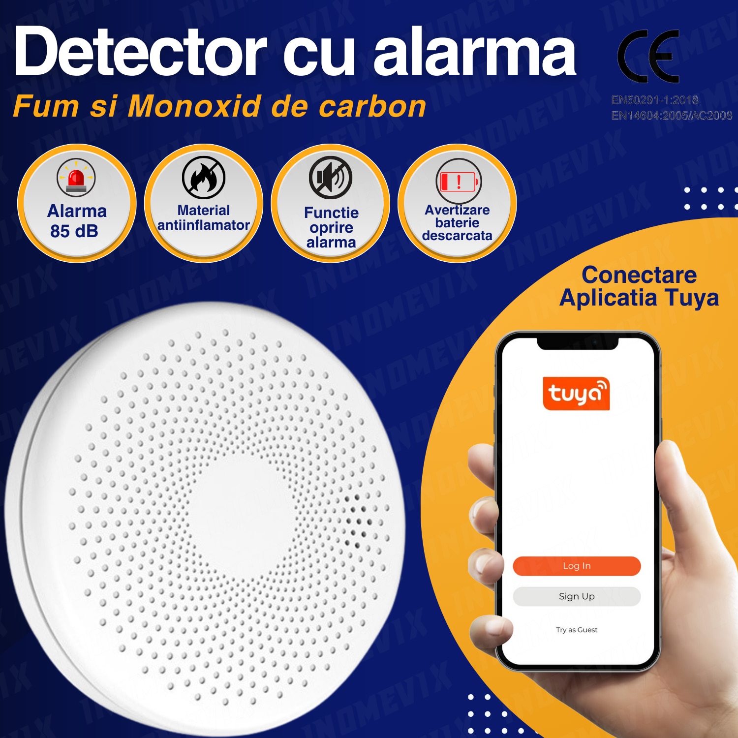 Fie ca sunteti acasa sau in deplasare, veti fi imediat informat despre orice potential pericol. Acest sistem va ofera liniste sufleteasca, stiind ca puteti actiona rapid in situatii critice. Detectorul smart 2 in 1 este echipat cu tehnologie inteligenta care va permite sa fiti conectat non-stop la siguranta locuintei dvs. Prin utilizarea aplicatiilor Tuya Smart si Smart Life, aveti posibilitatea de a primi notificari instantanee direct pe telefonul mobil in cazul in care senzorii detecteaza fum sau monoxid de carbon.