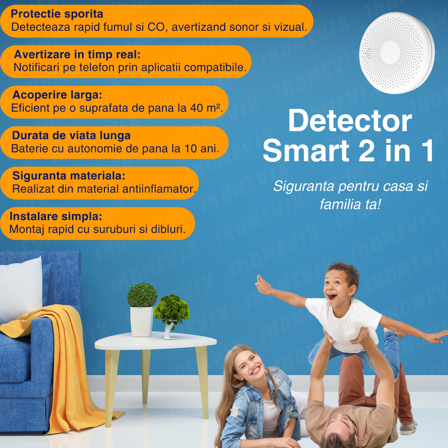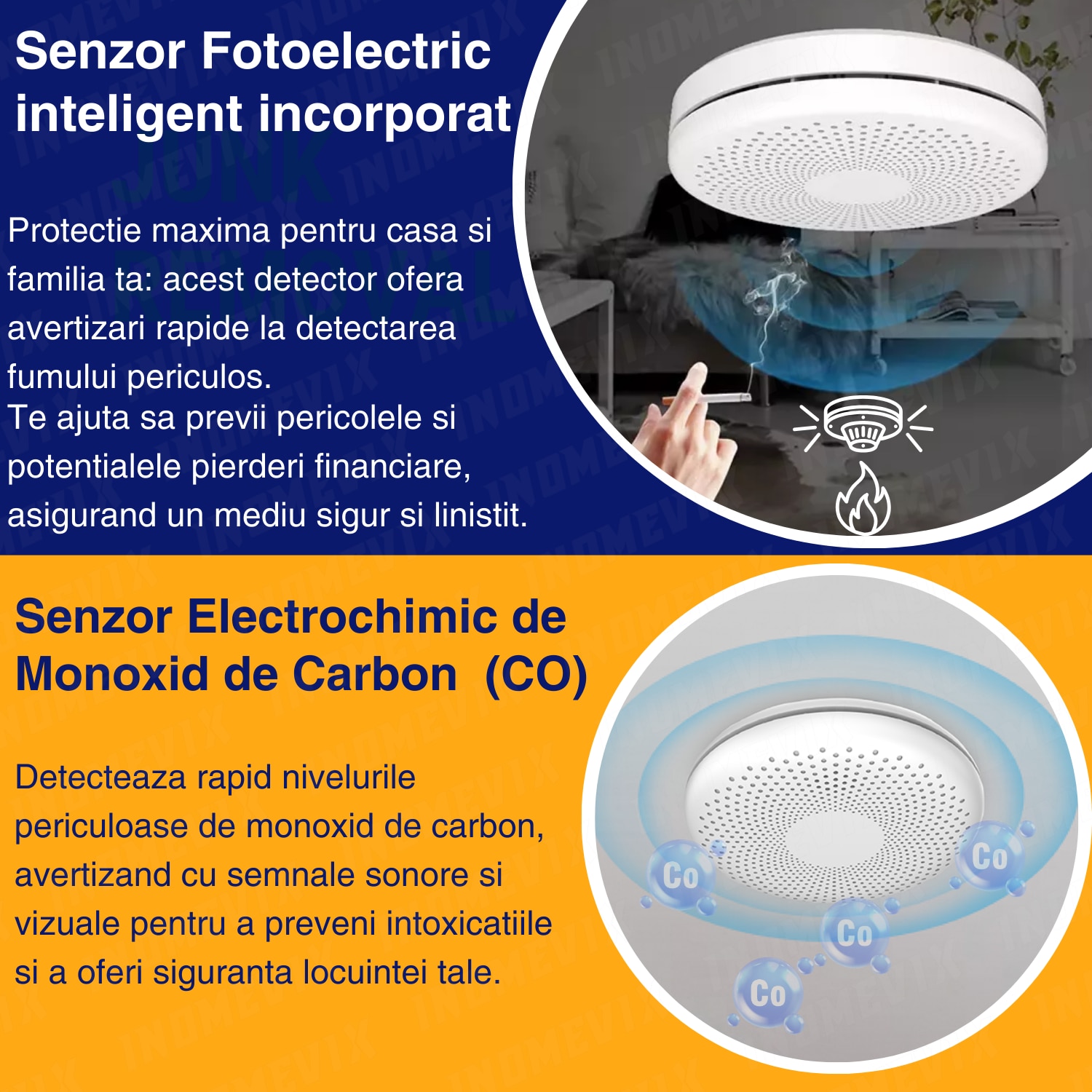 Detectorul inteligent 2 in 1 de fum si monoxid de carbon este optiunea ideala pentru cei care acorda o importanta deosebita sigurantei si doresc sa se bucure de o tehnologie avansata in protectia impotriva incendiilor si intoxicarii cu monoxid de carbon.