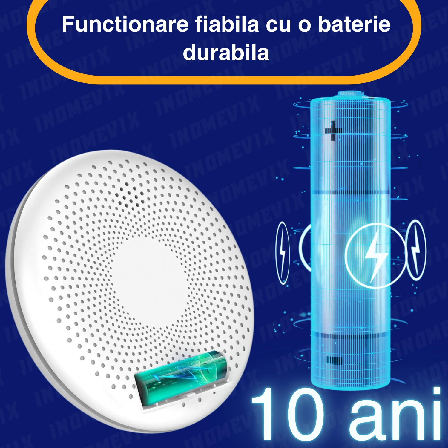 Acest detector de fum si monoxid de carbon inteligent se remarca prin capacitatea sa de a identifica si avertiza rapid in cazul unei amenintari iminente, permitandu-ti sa reactionezi prompt si sa iei masuri preventive sau sa ceri ajutorul autoritatilor in caz de urgenta.
