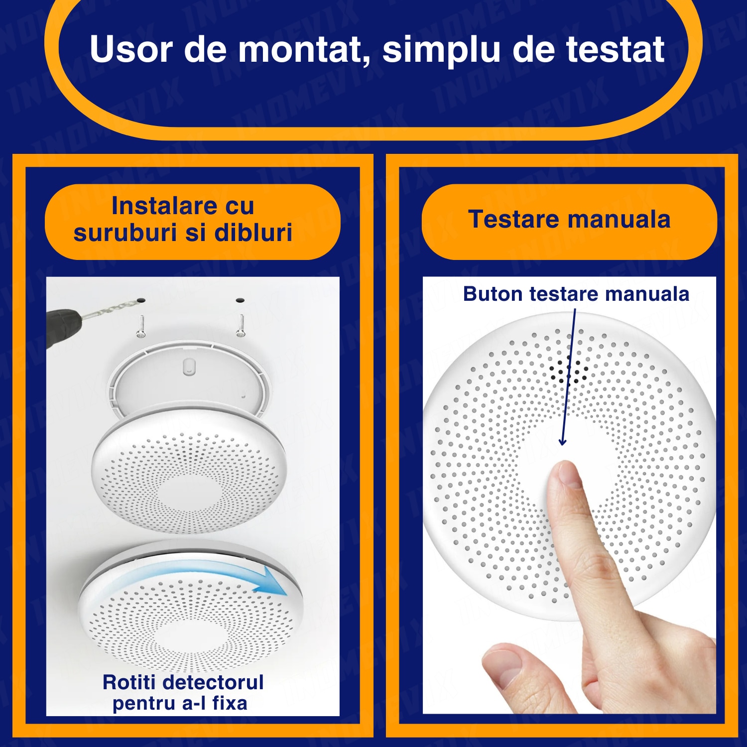 Detectorul Smart nu doar detecteaza fumul, ci si monitorizeaza prezenta monoxidului de carbon, oferind o protectie completa impotriva riscurilor din locuinta. Este un partener de incredere in oferirea sigurantei tale si a celor dragi.