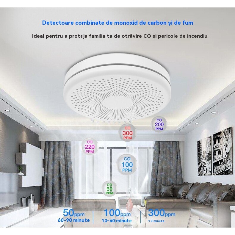 Detector de fum si monoxid de carbon (CO) cu efect dublu - Protejati-va siguranta casei, acum cu suport WiFi! +