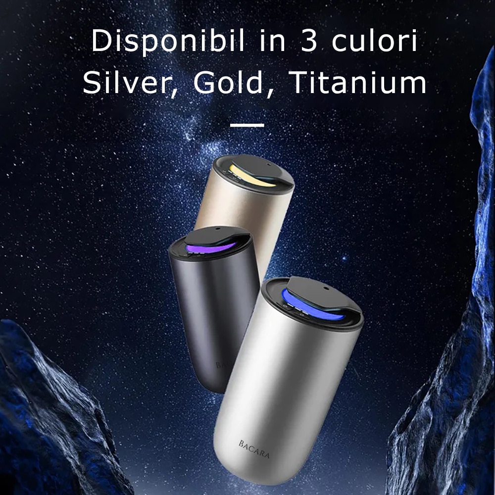 Transforma-ti calatoriile cu Bacara® K1, difuzorul odorizant auto cu design premium. Include parfum de 15 ml, senzor de miscare ON/OFF, trei moduri de functionare, lumini ambientale personalizabile si alimentare duala prin USB-C sau baterie.