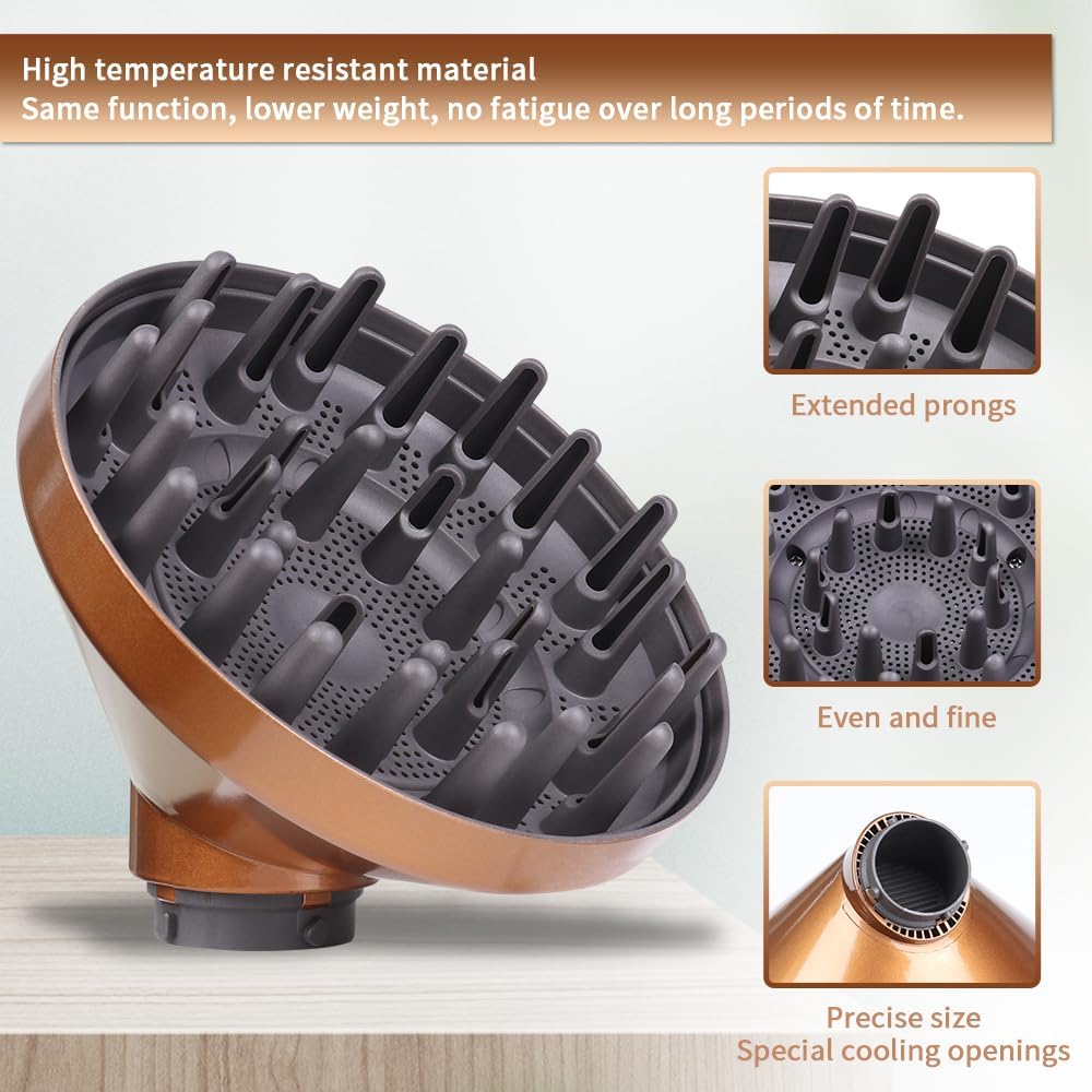 Difuzor pentru uscator de par, compatibil cu Dyson Airwrap, pentru par ondulat si cret, aurie, dimensiune perfecta