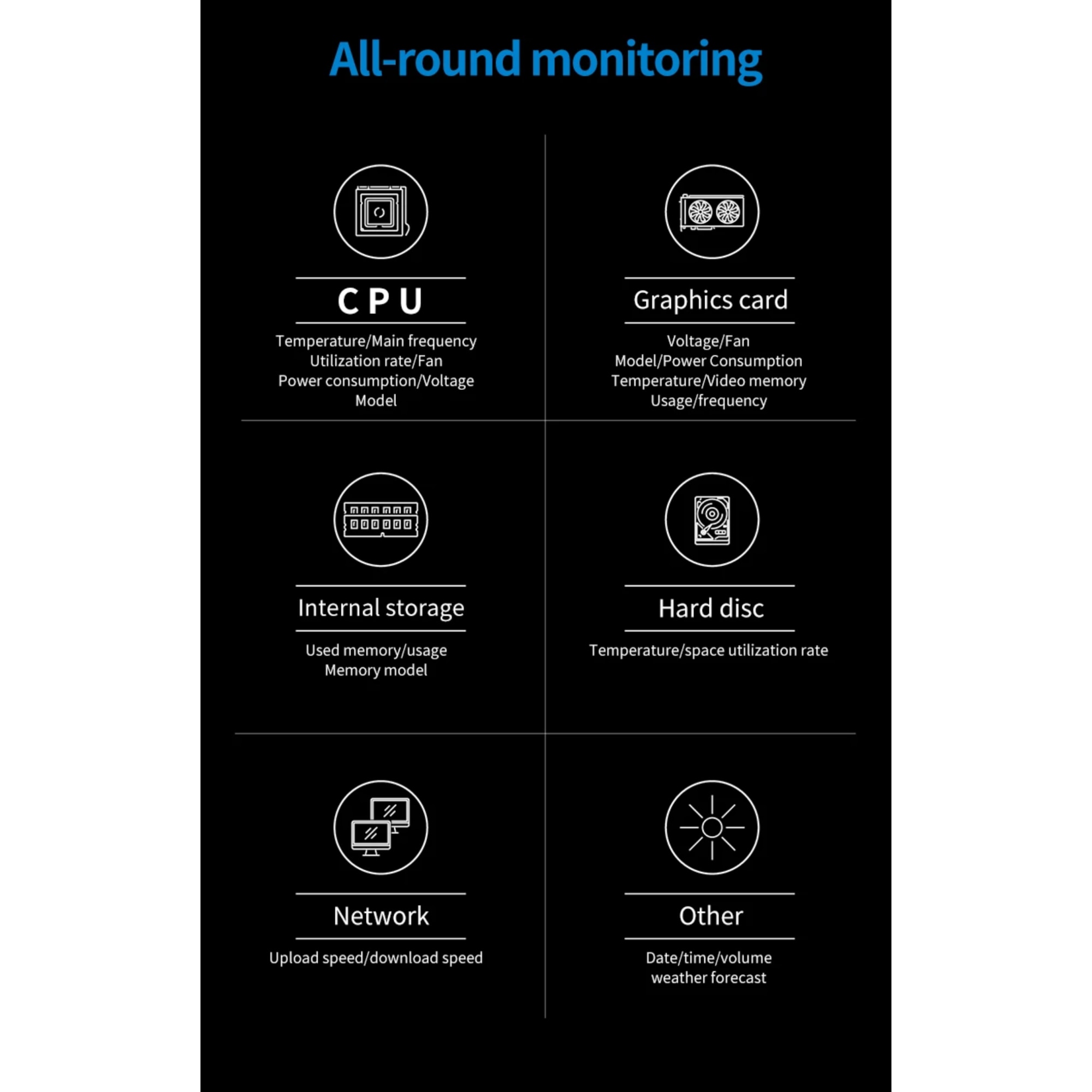 Display Secundar Gaming PC IPS 5 Inch, Monitorizare Temperatura si Performanta GPU, CPU, SSD, Retea, USB-C, Negru + Filtru praf 120 MM pentru PC, Pasta Termoconductoare HUSKY 1g, 2 Protectii RFID, UNDERSHOP®