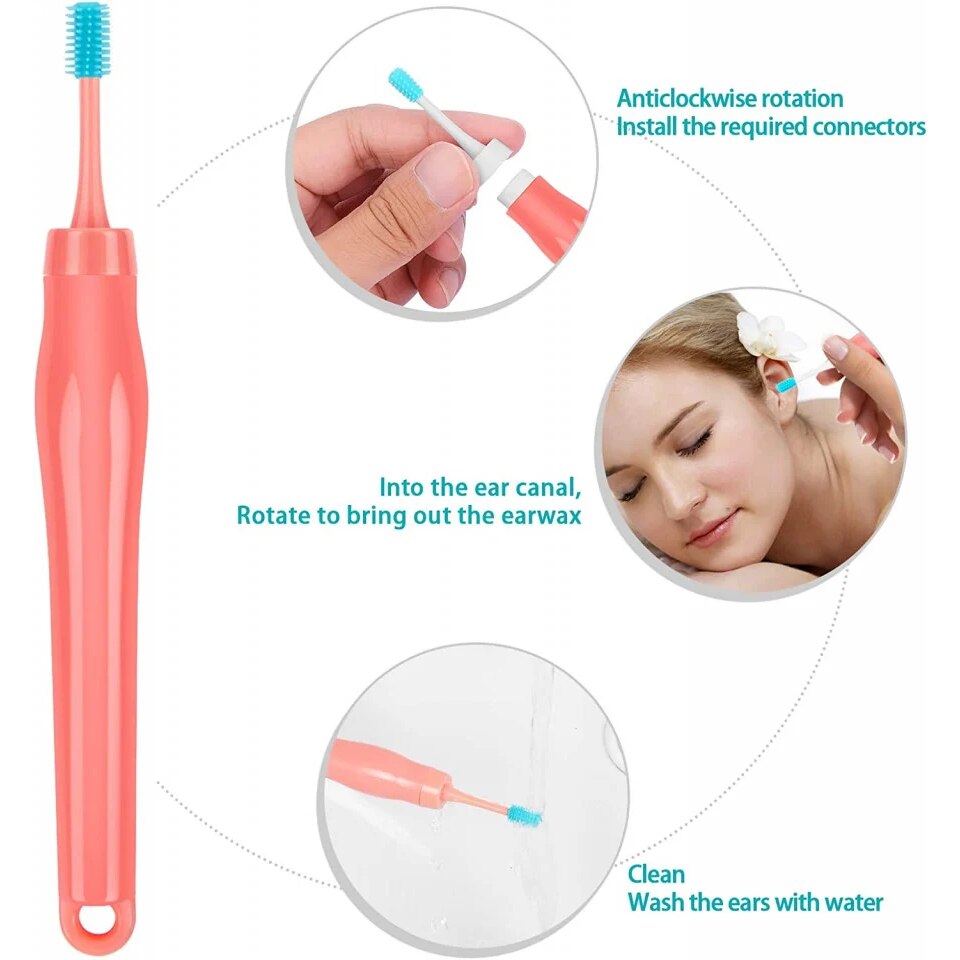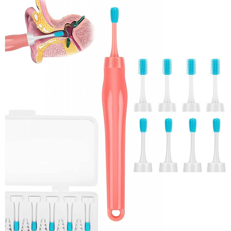 Dispozitiv de curatare a urechilor cu 16 capete de inlocuire Oblitzon, silicon, roz/albastru/alb