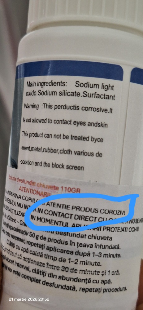 Produsul este corosiv nu cum scrie in descriere.