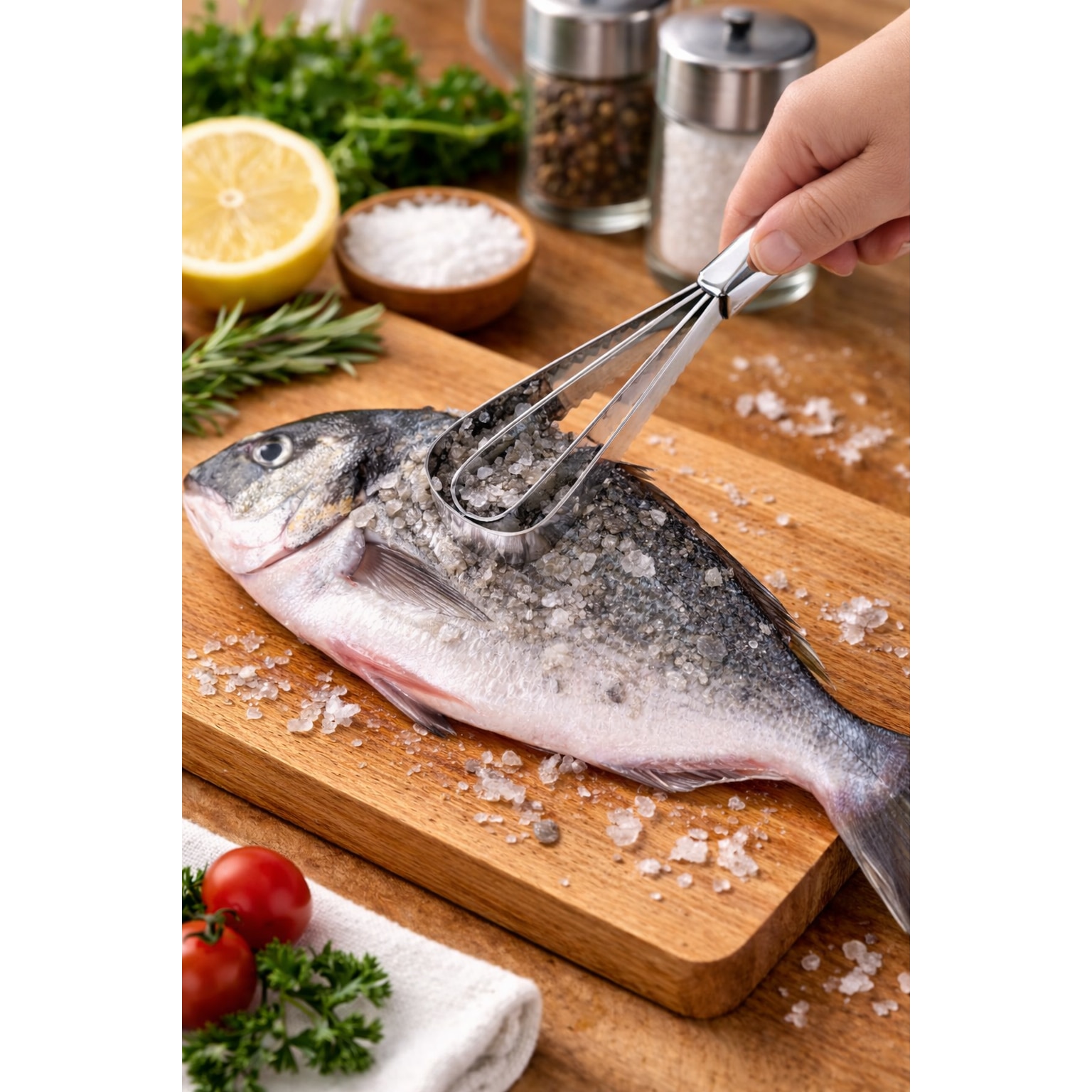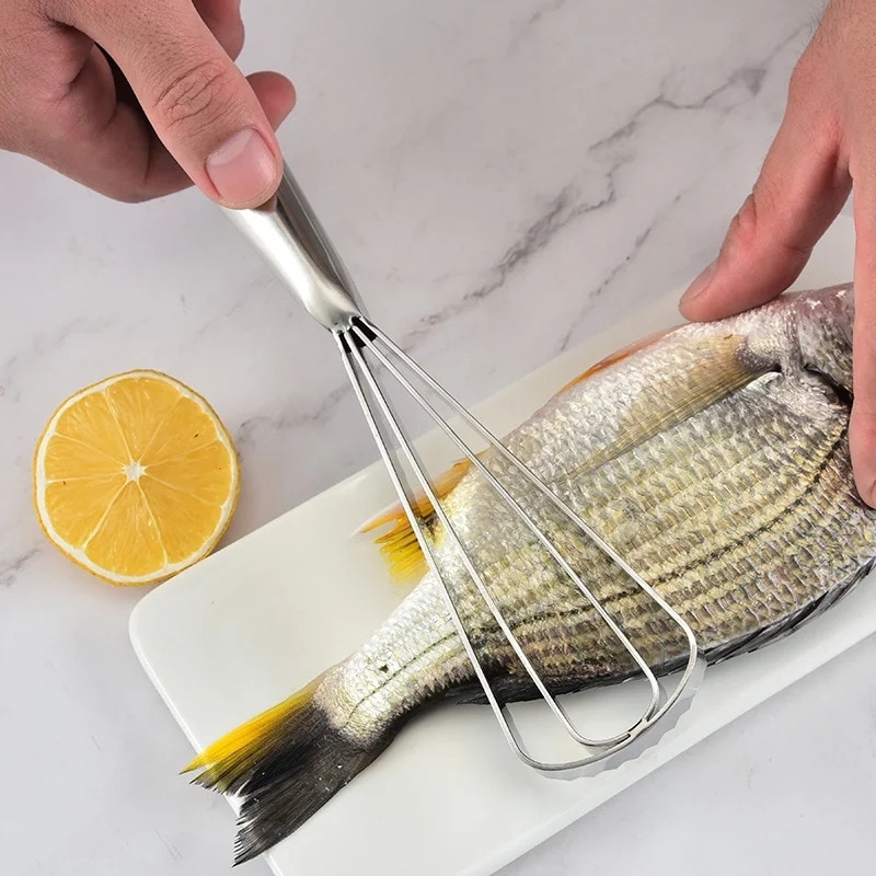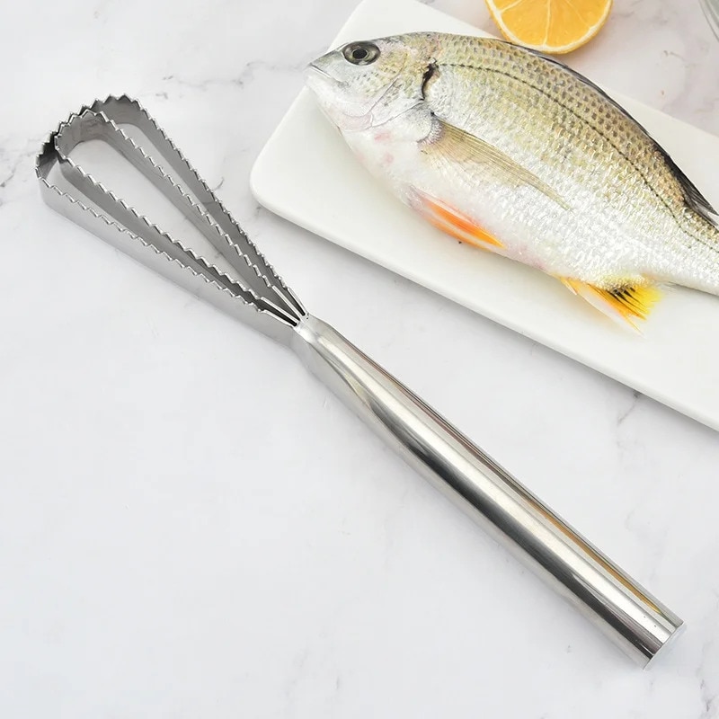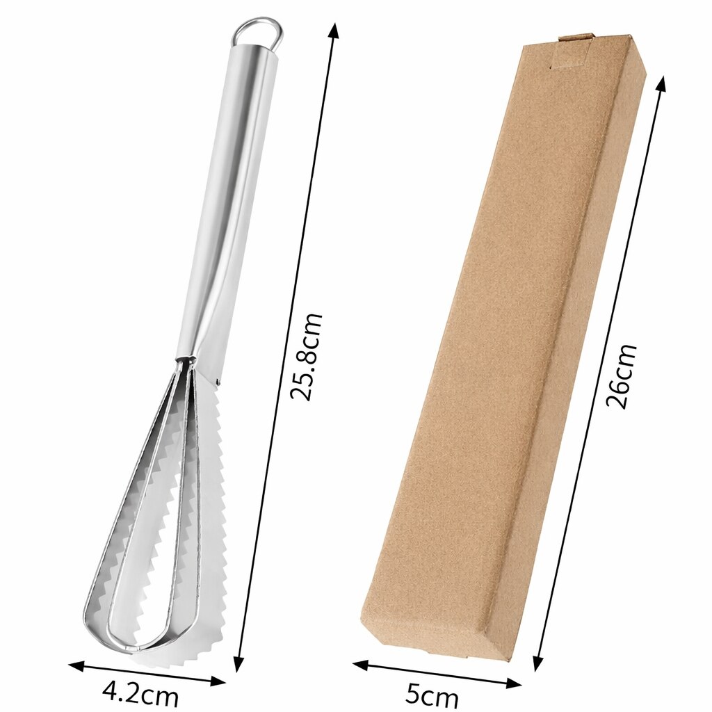 Dispozitiv profesional de curatat solzi de peste, awwaline, inox, argintiu, lame duble zimtate, maner ergonomic, 25.8 x 4.2 cm