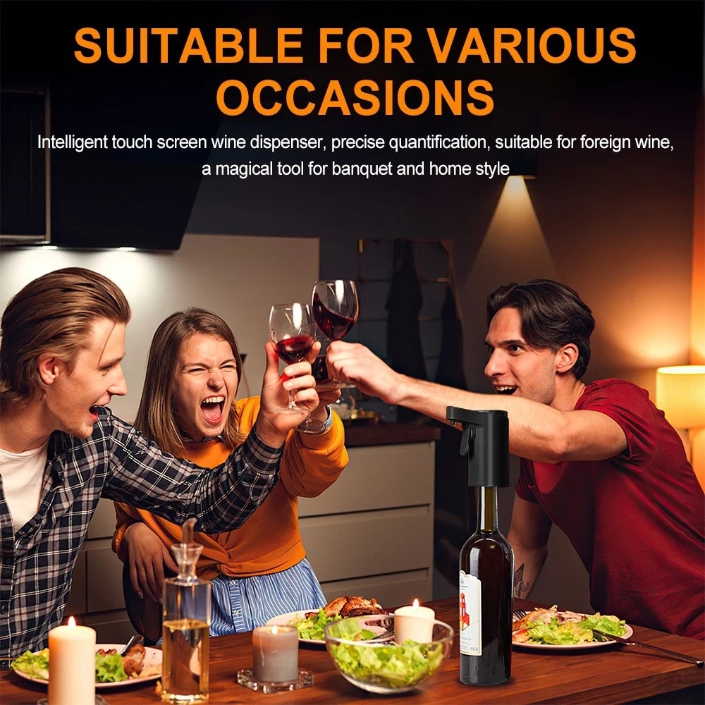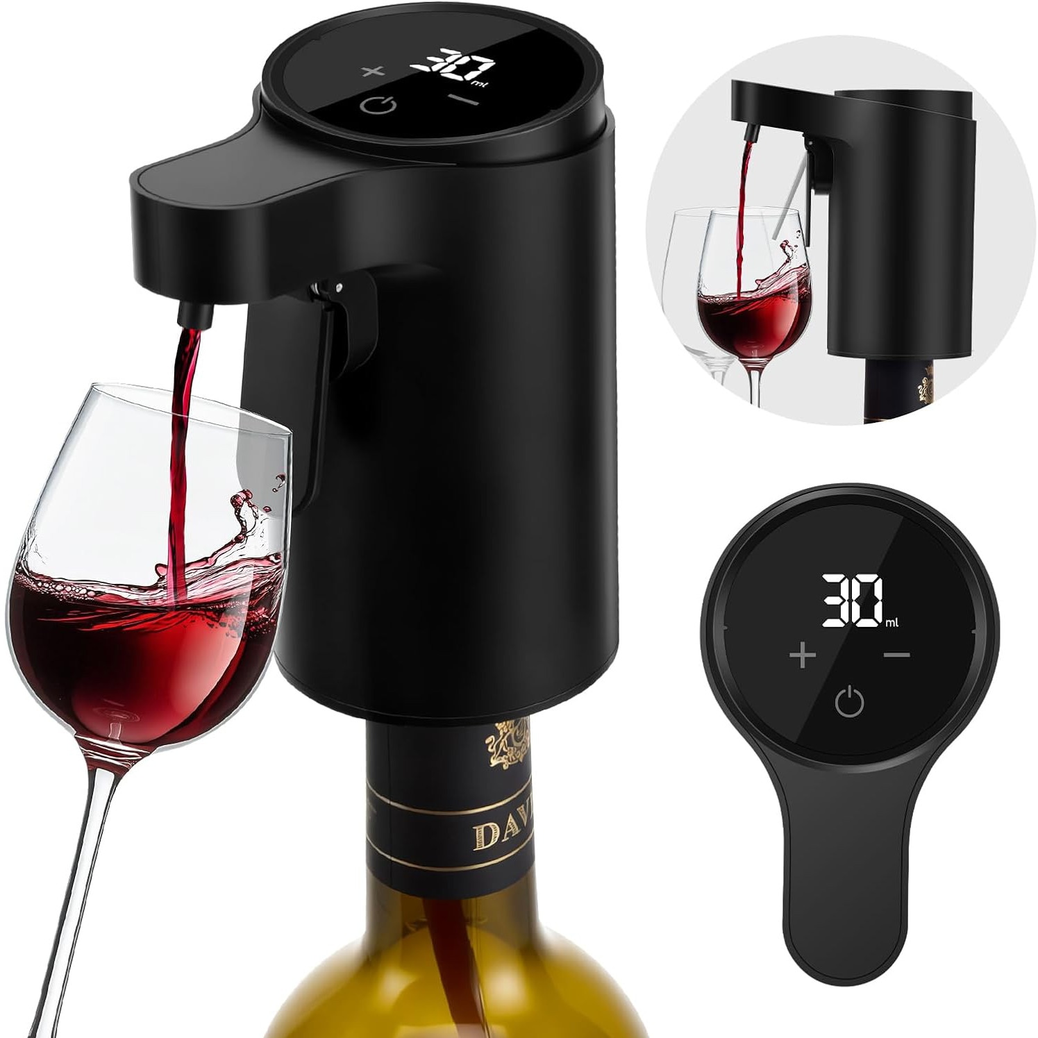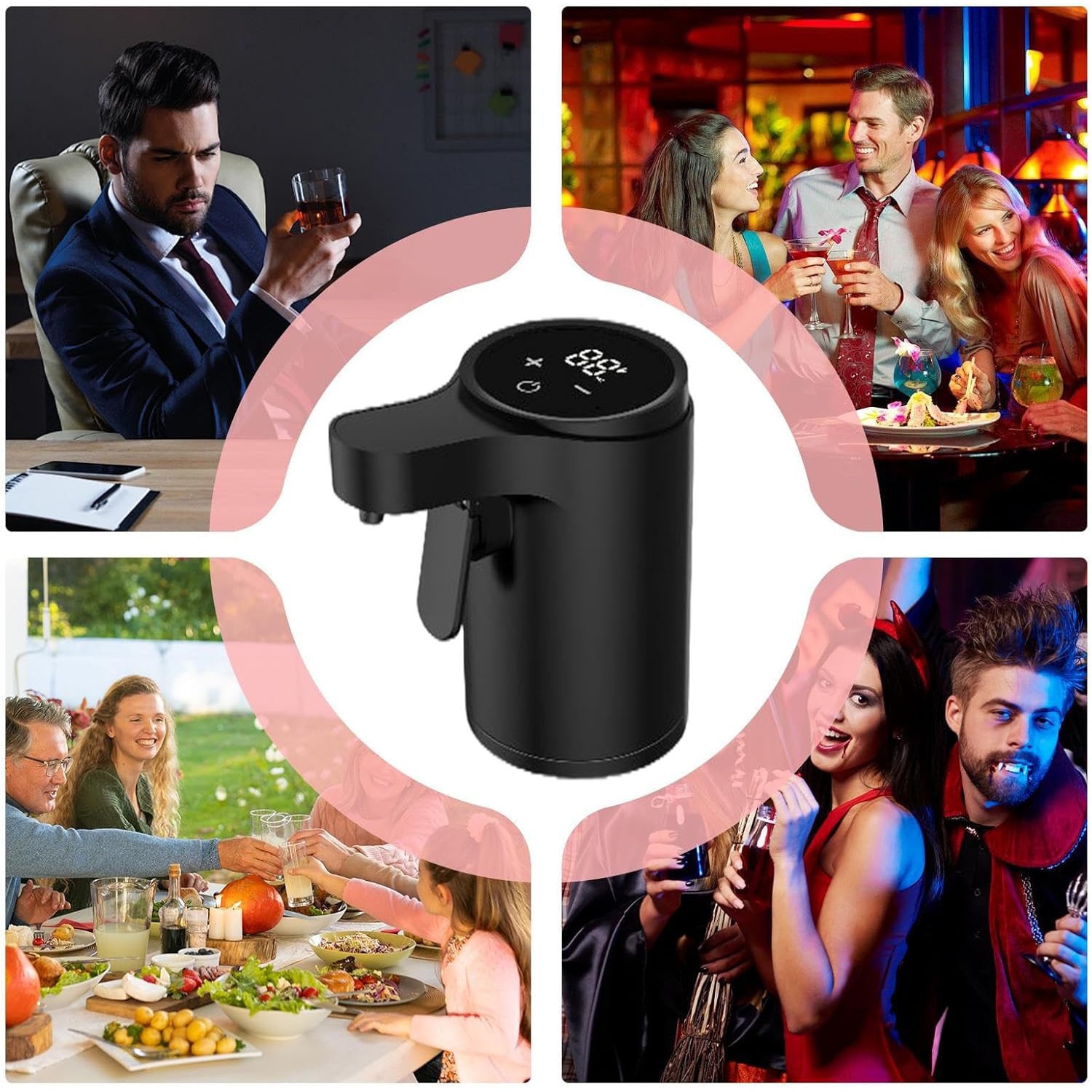 Dozator electric inteligent pentru vin si bauturi, Bedee, cu ecran digital, Aerator automat, control al cantitatii si incarcare USB, Baterie 1200 mAh, Compatibil cu diverse sticle, Negru
