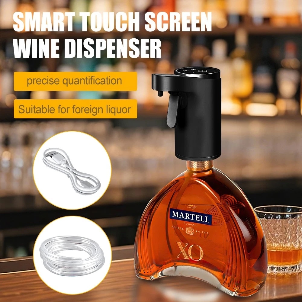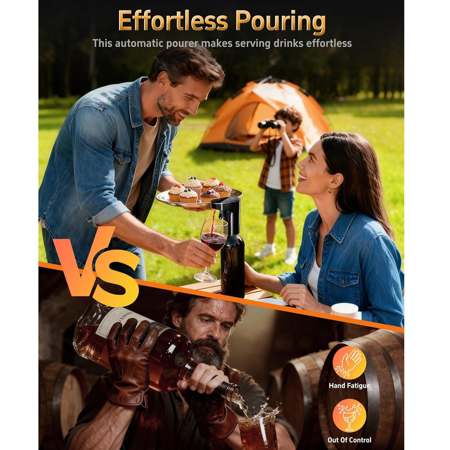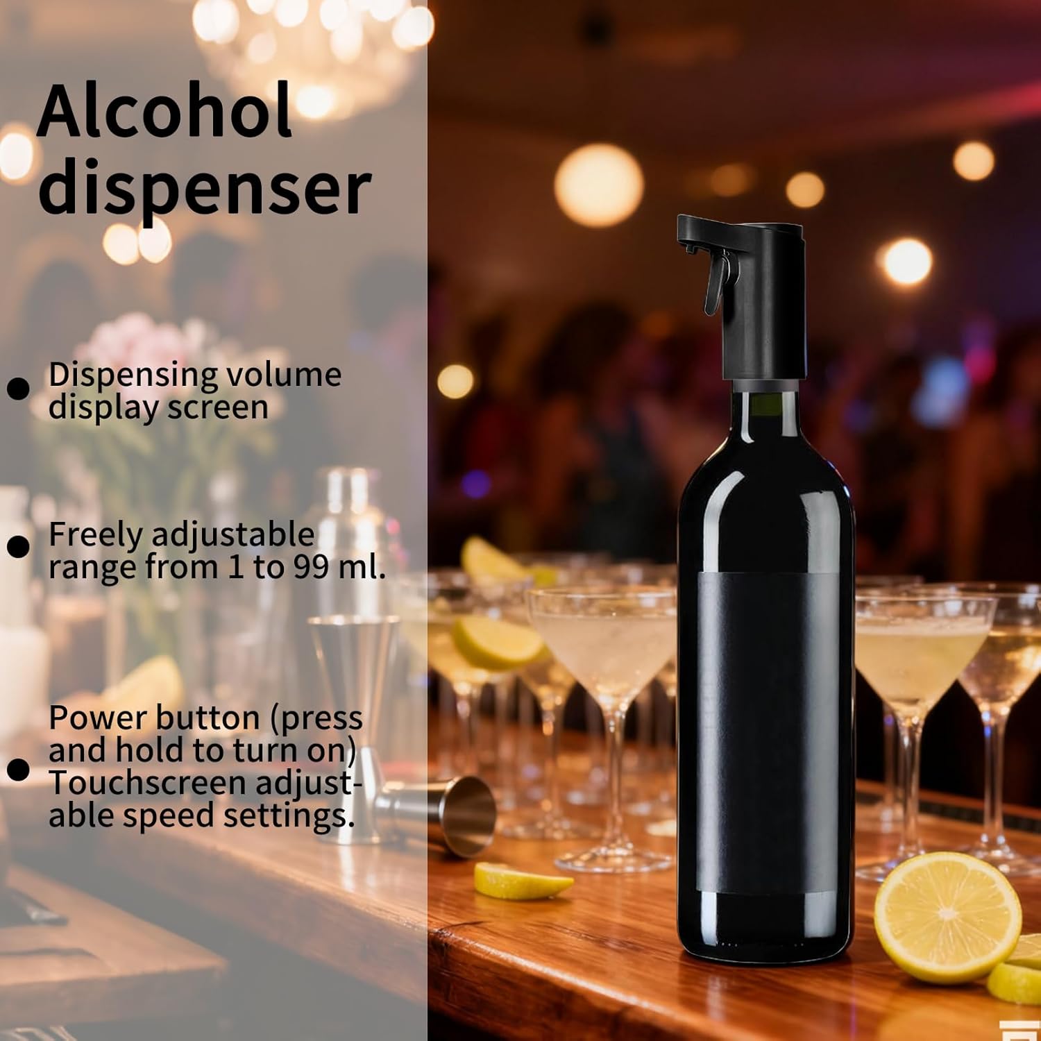 Dozator electric inteligent pentru vin si bauturi, Bedee, cu ecran digital, Aerator automat, control al cantitatii si incarcare USB, Baterie 1200 mAh, Compatibil cu diverse sticle, Negru