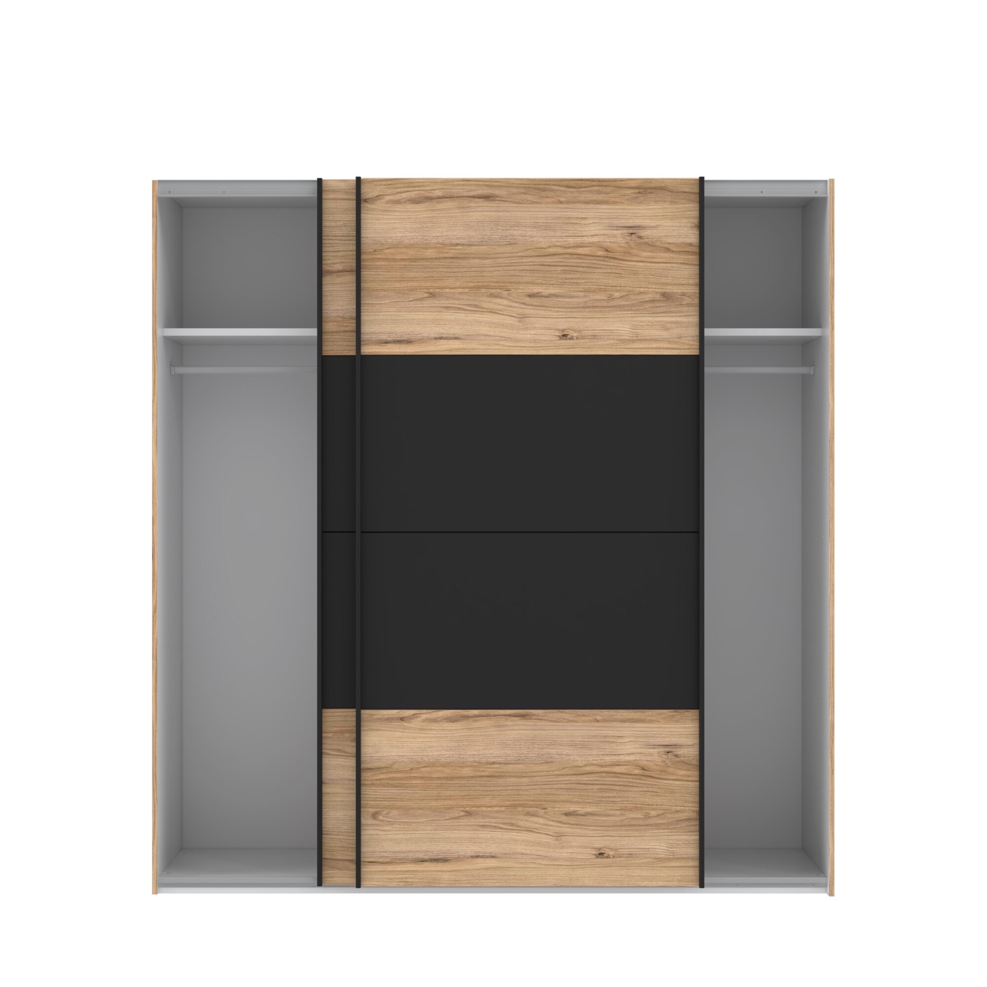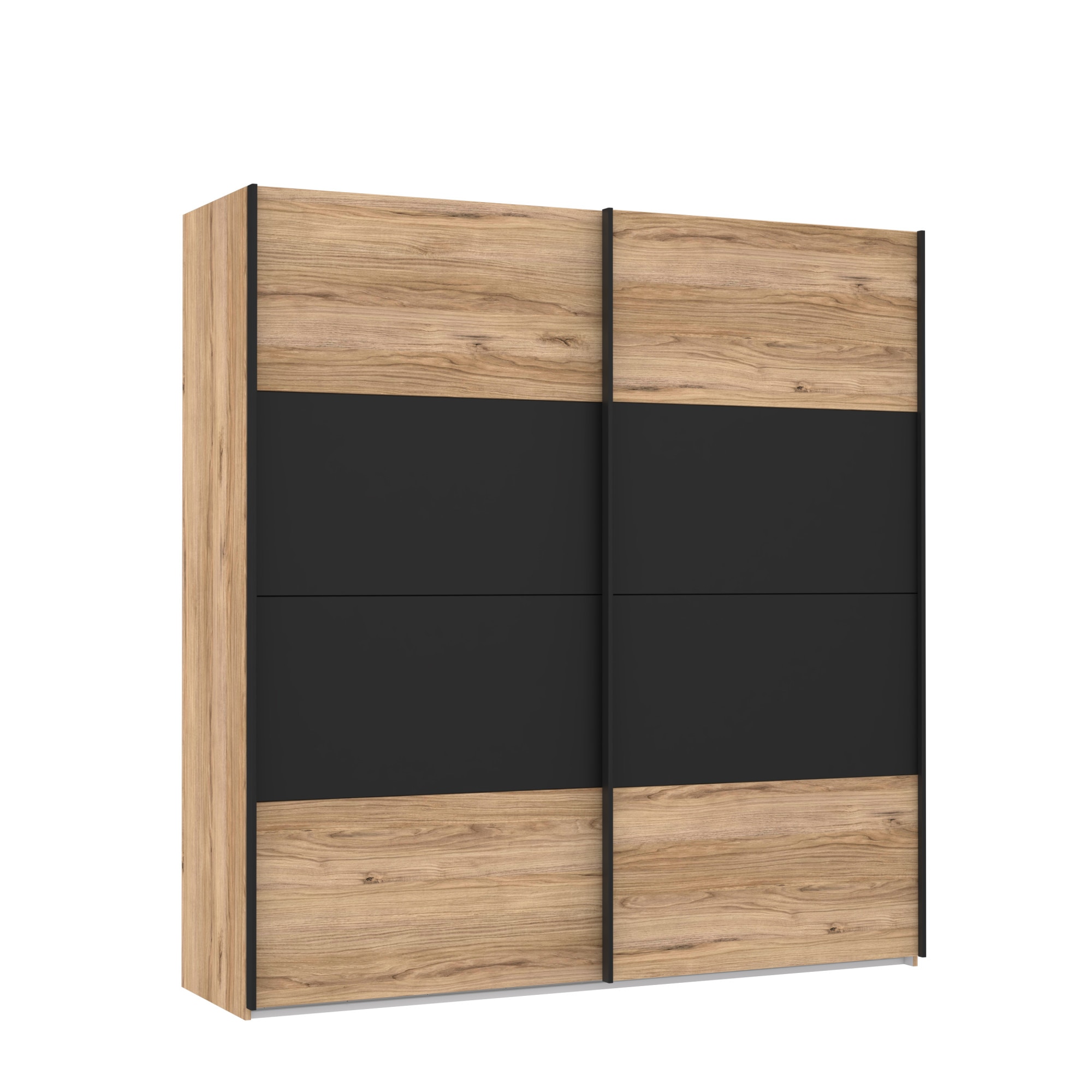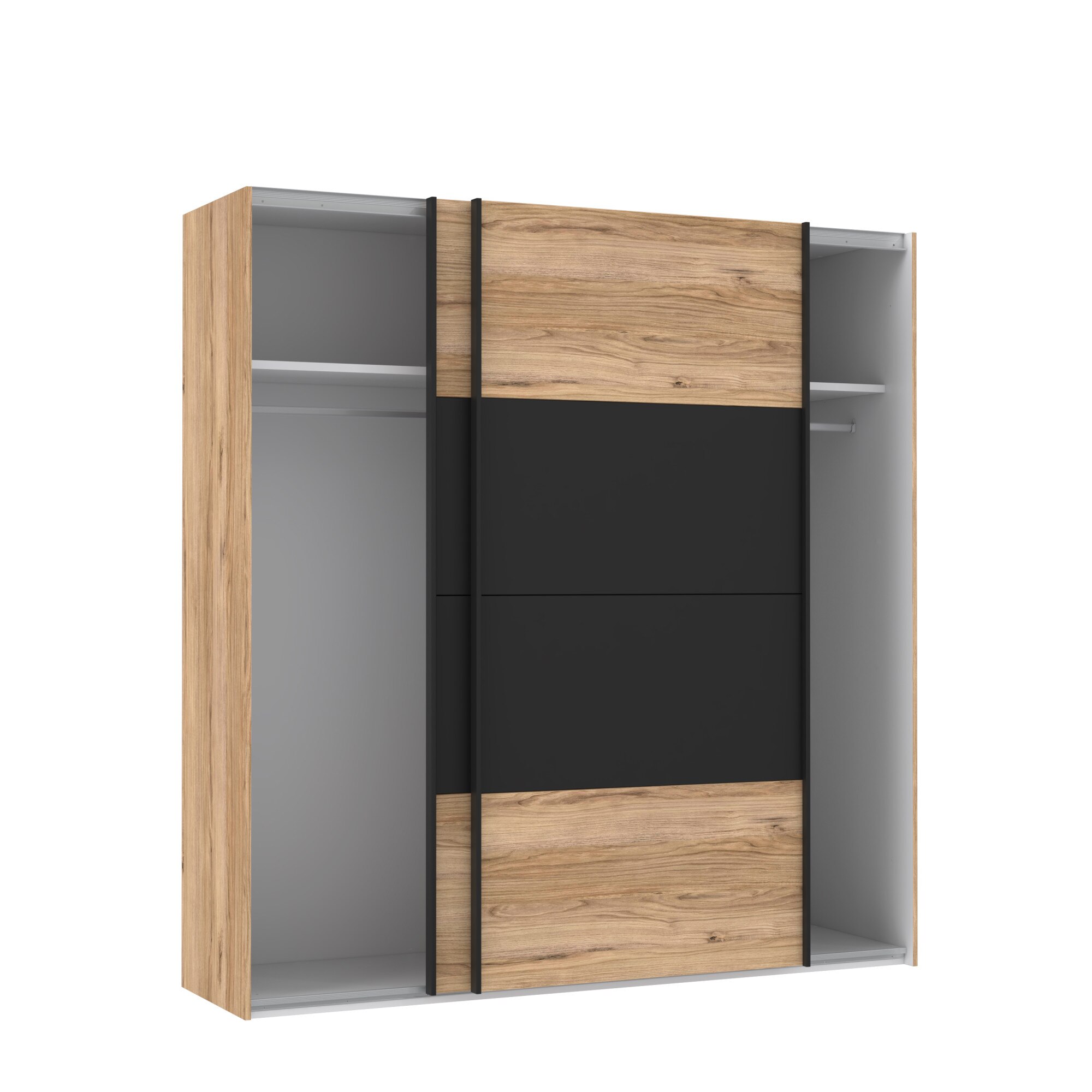 Dulap/Dressing Forte Dalate, dimensiuni 200.1x 210.5x 62.9, culoare stejar Catania/ negru, 2 usi culisante, 2 bare de umerase