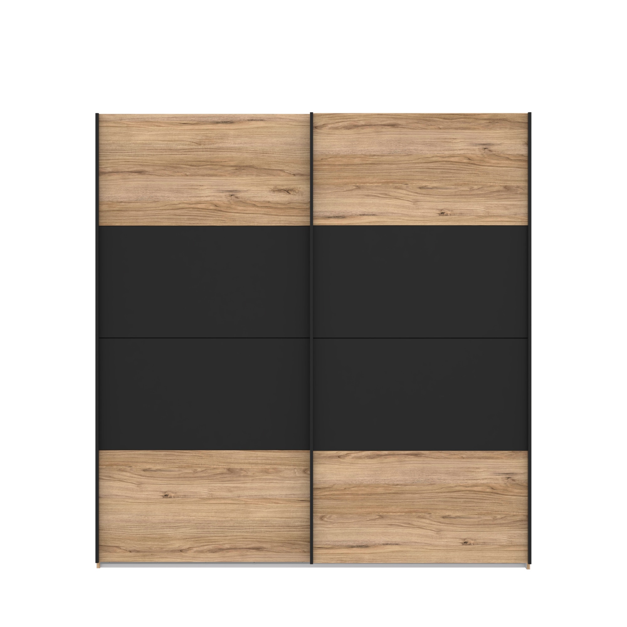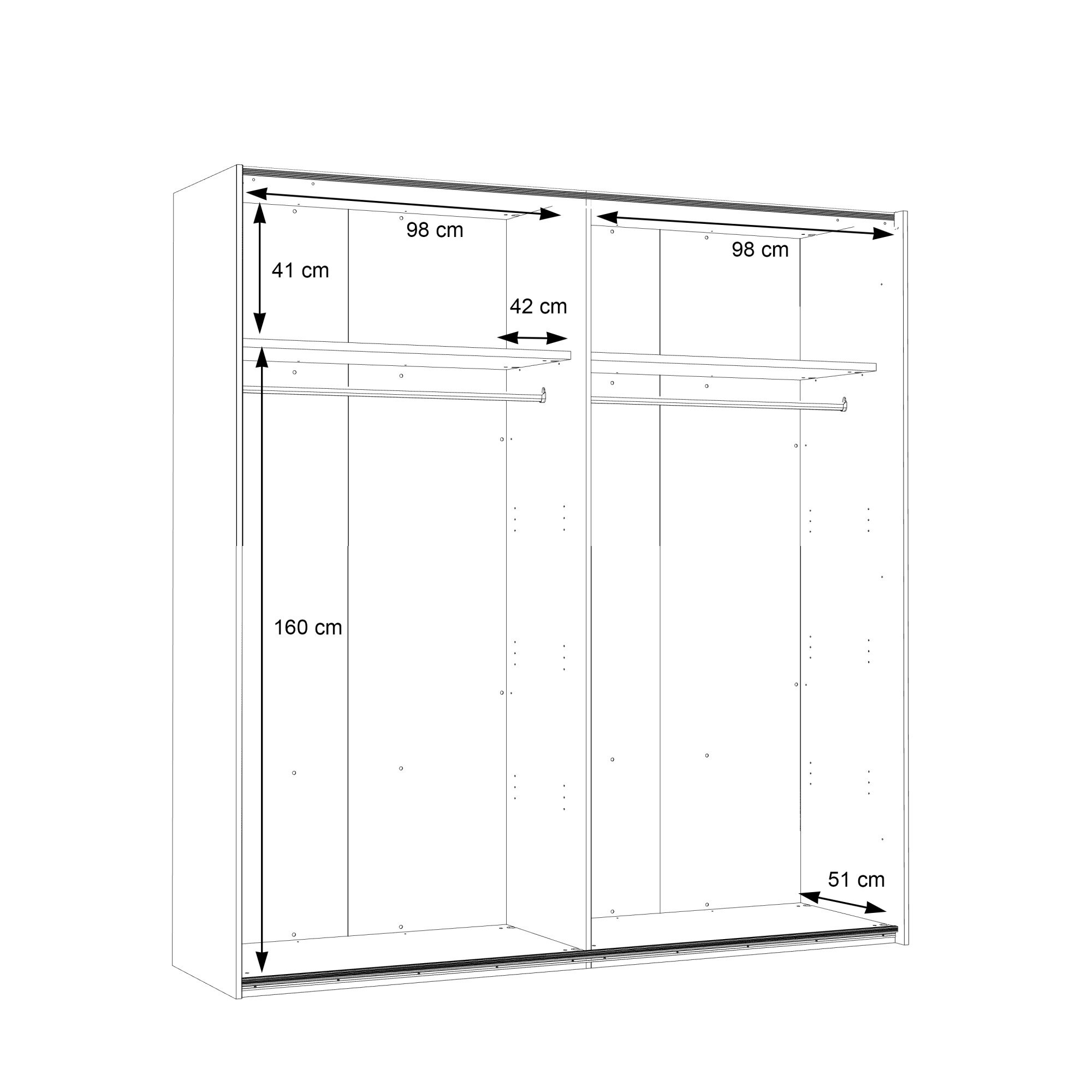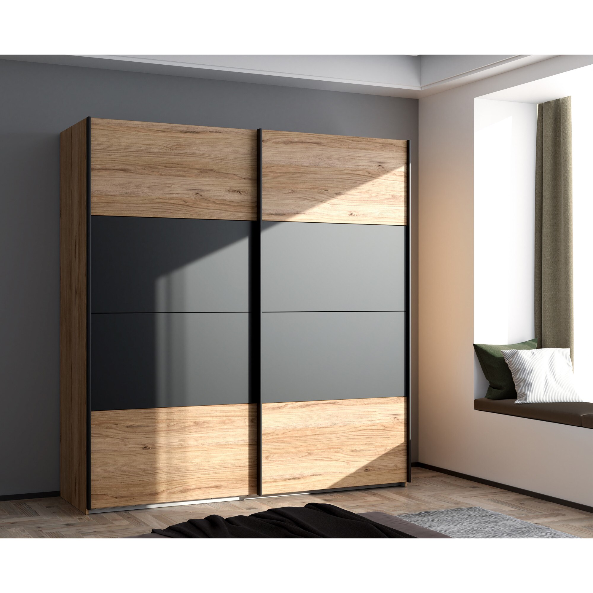 Dulap/Dressing Forte Dalate, dimensiuni 200.1x 210.5x 62.9, culoare stejar Catania/ negru, 2 usi culisante, 2 bare de umerase